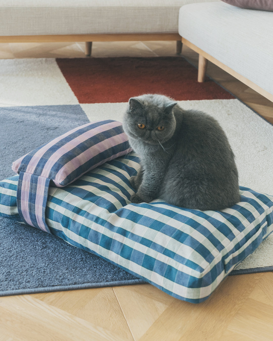 引っかきに強く、汚れたら洗えるラグ。滑り止めも付いているので、大切なペットとの暮らしも安心です。