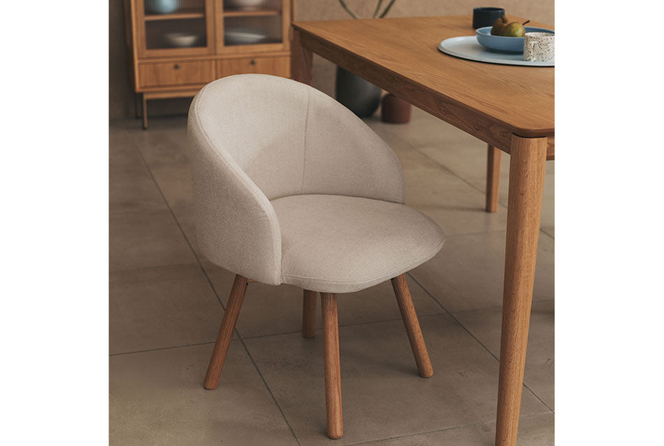 曲線的なやわらかさと、ナチュラルな素材感を組み合わせたリビングダイニング。