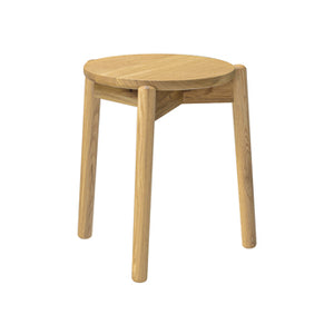 お部屋には、オーク材のナチュラルな素材感を活かしたシンプルなSOLKサイドテーブルが使われています。スツールとしても使える、使い勝手のいいテーブルです。