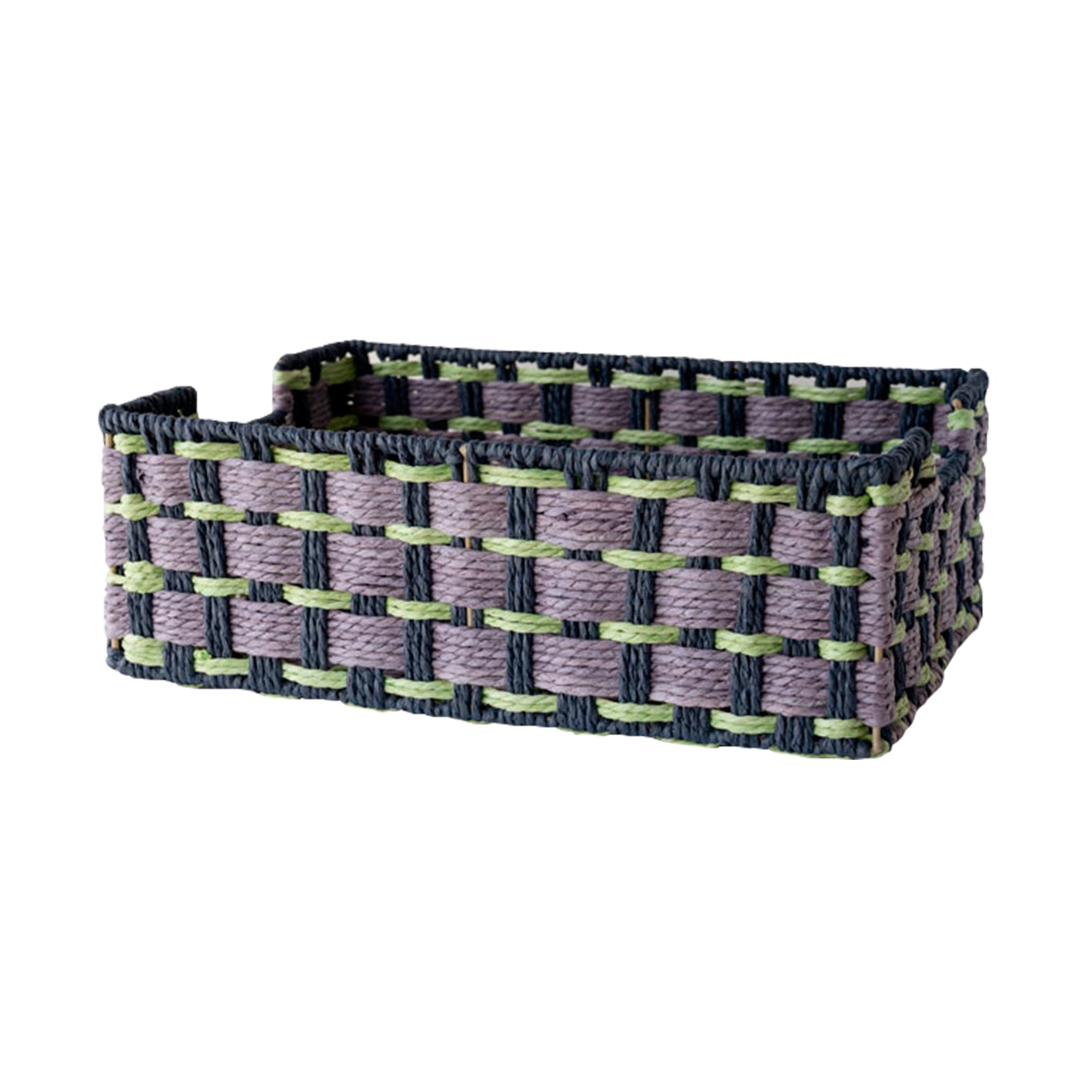 3色のペーパーロープで編み上げたトレー。