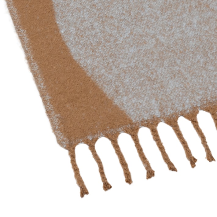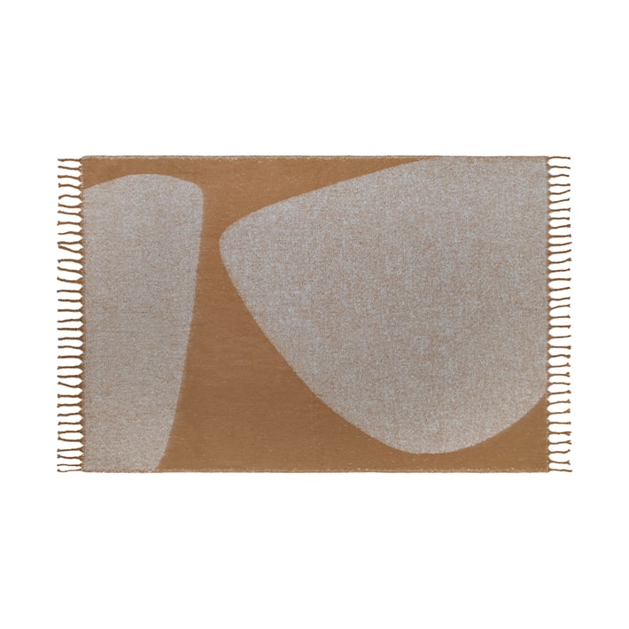 大きな丸みのある抽象柄がやわらかな印象の、パネルデザインの大判ブランケット。