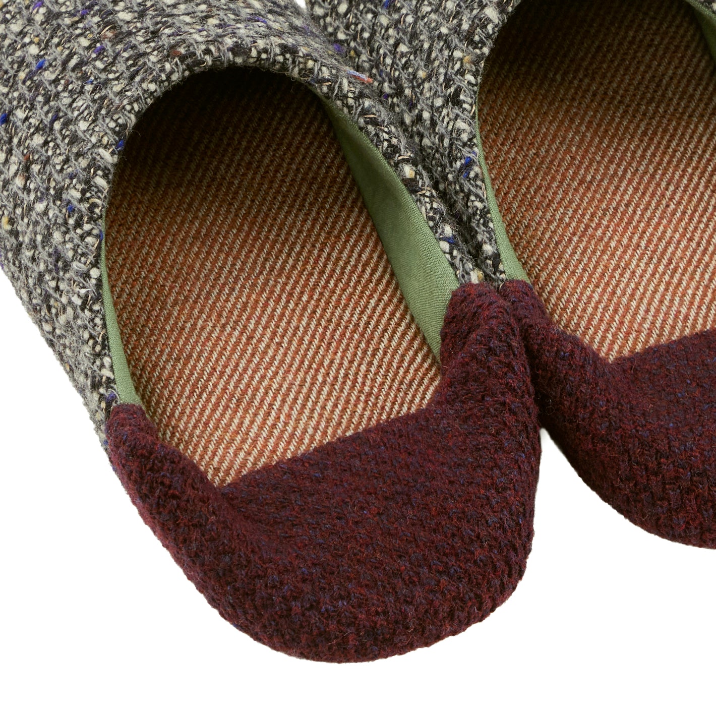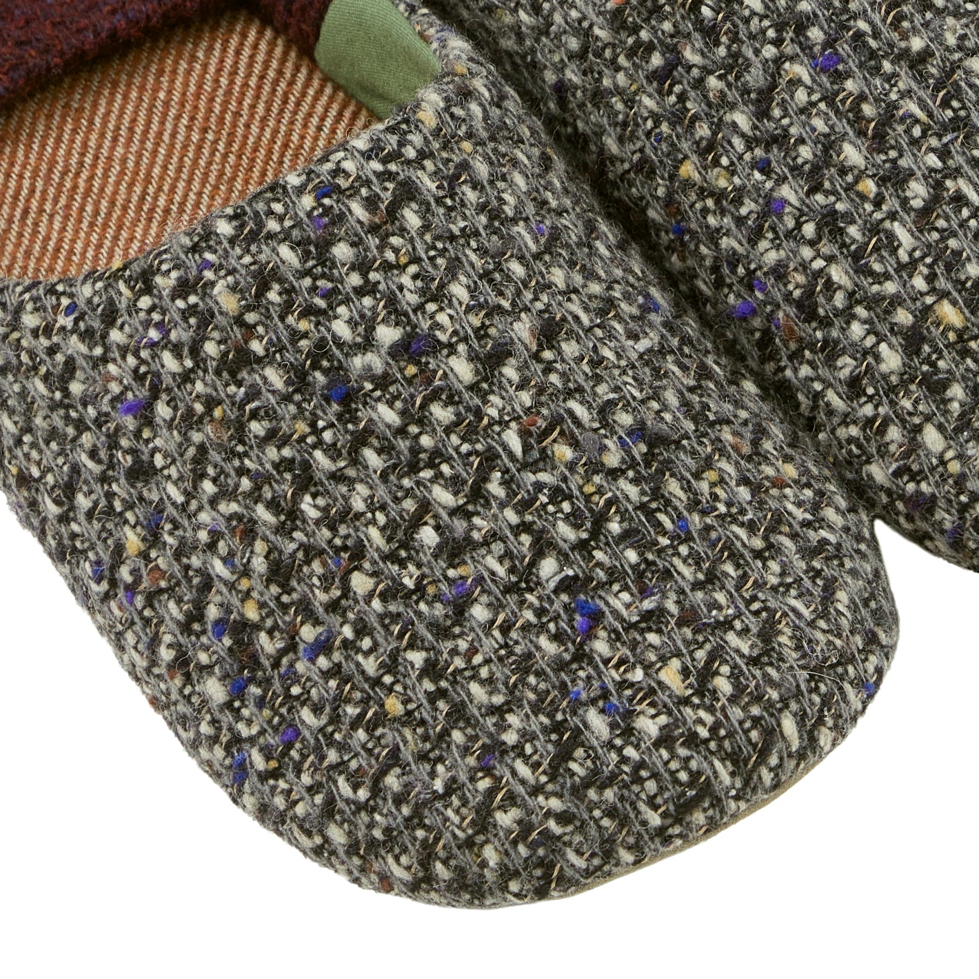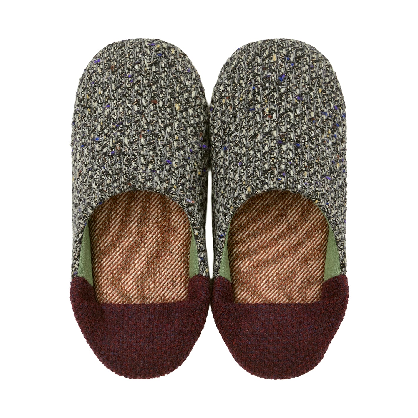 奥行きのある色合いのツイード生地を使った、秋冬らしいルームシューズ。