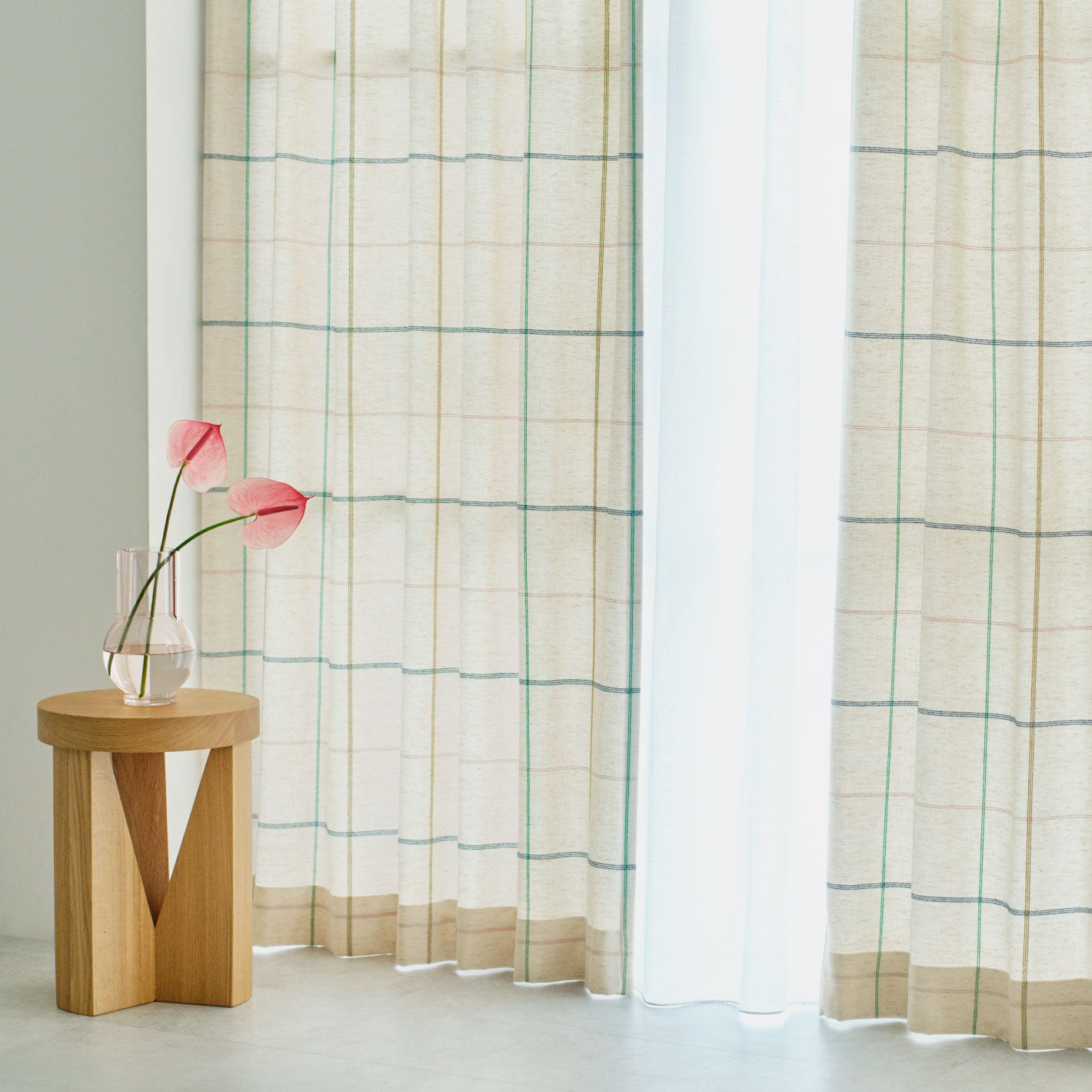 お部屋を明るい雰囲気にする、カラフルなチェック柄のカーテン。