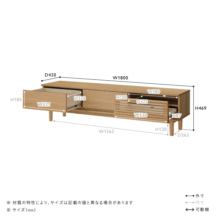 オーク材のナチュラルな素材感を生かしたシンプルなTVボード。