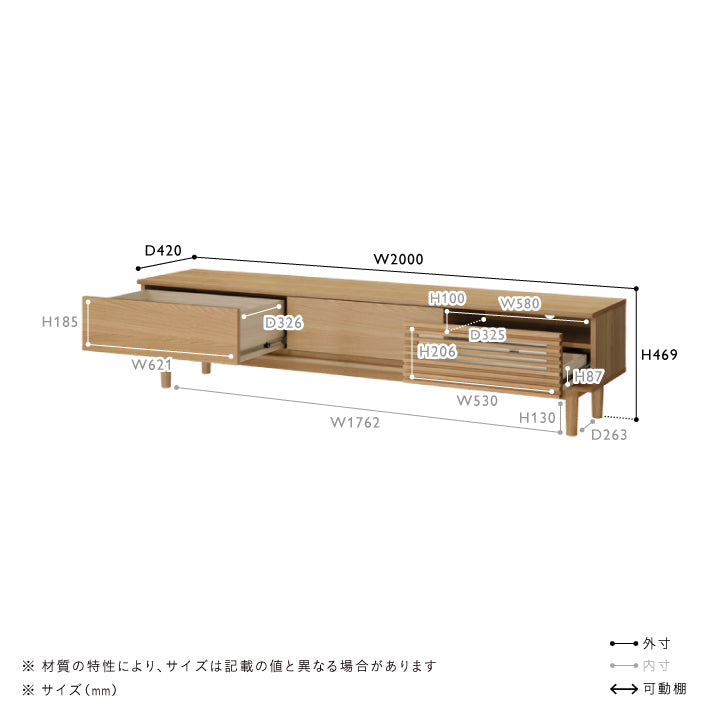オーク材のナチュラルな素材感を生かしたシンプルなTVボード。