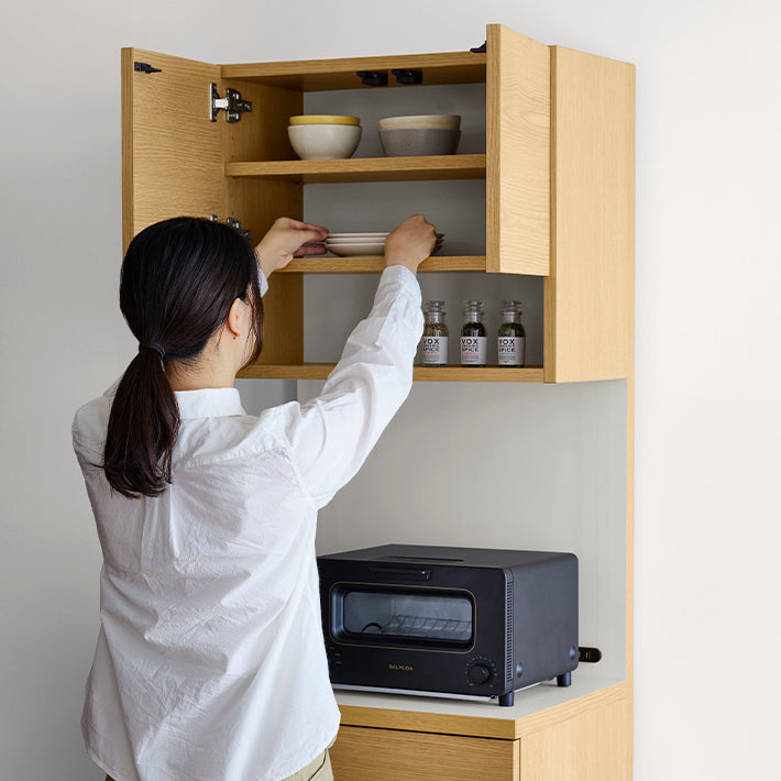 背面が白色なので空間に自然に馴染みやすく、小棚にお気に入りの食器やカップなどをしまっても、きれいに見えます。