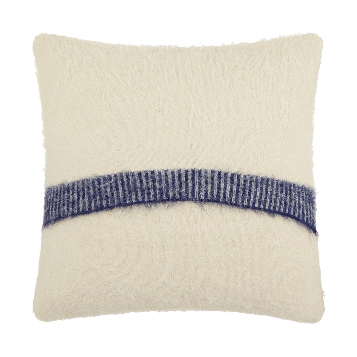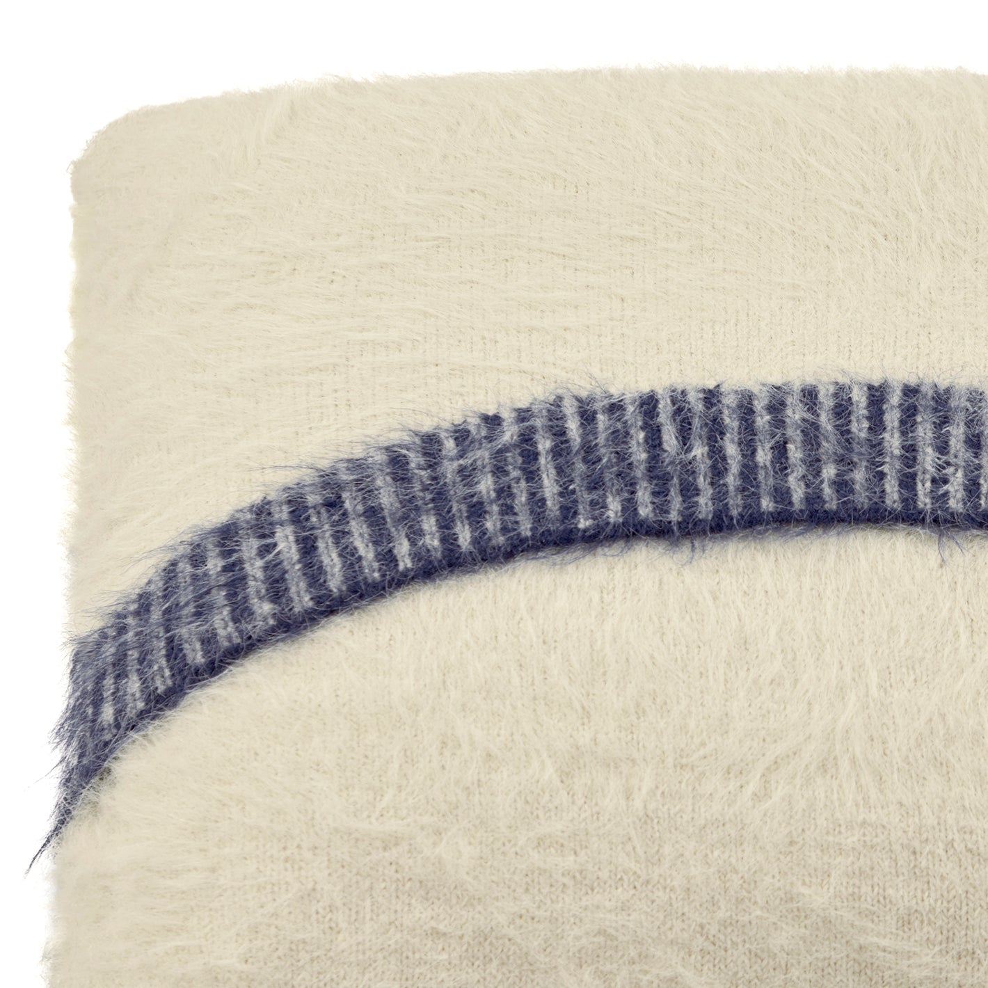 ゆったりと流れるような4色のラインと、毛足の長さがやさしい印象のニットクッション。