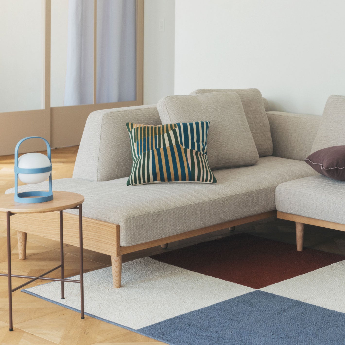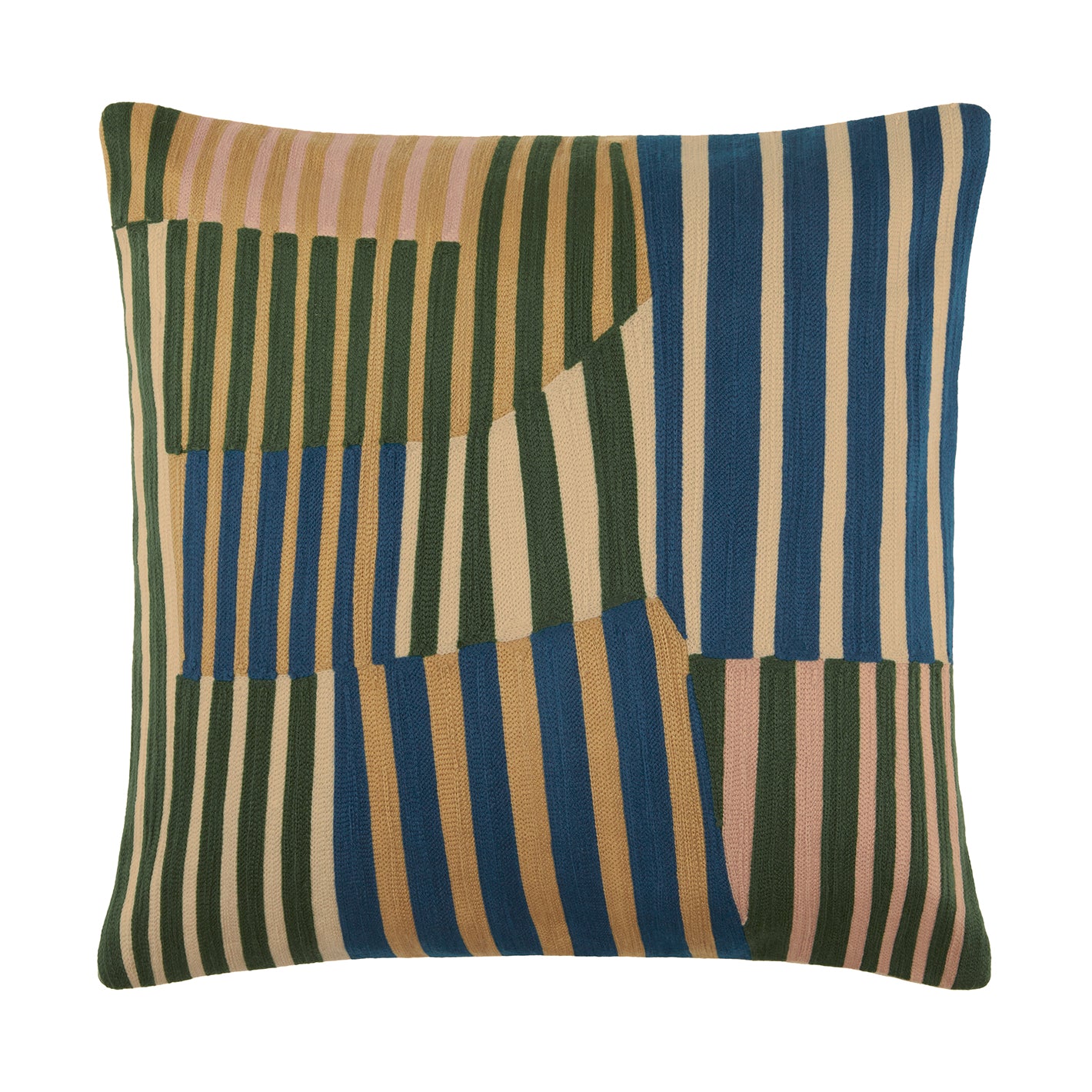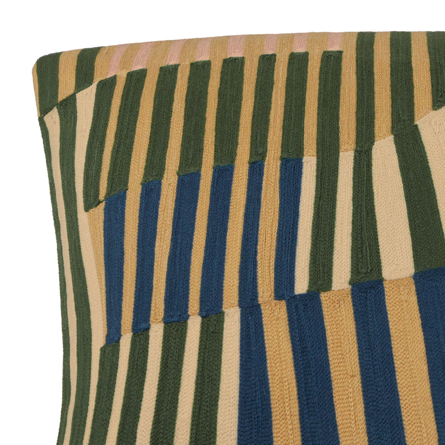 抽象柄とストライプ柄を組み合わせたクッションカバー。