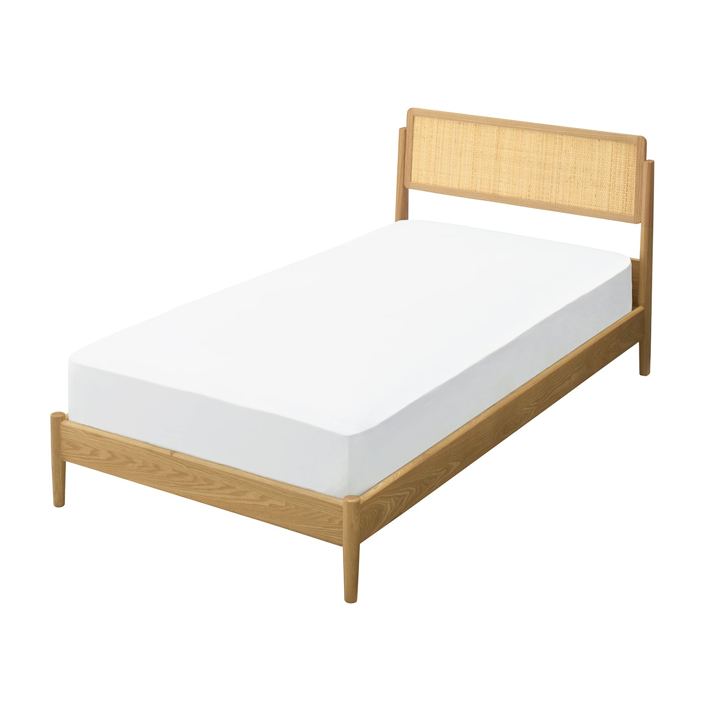 ヘッドボードには皮を残したラタンを使用。色のムラや豊かな表情が魅力です。