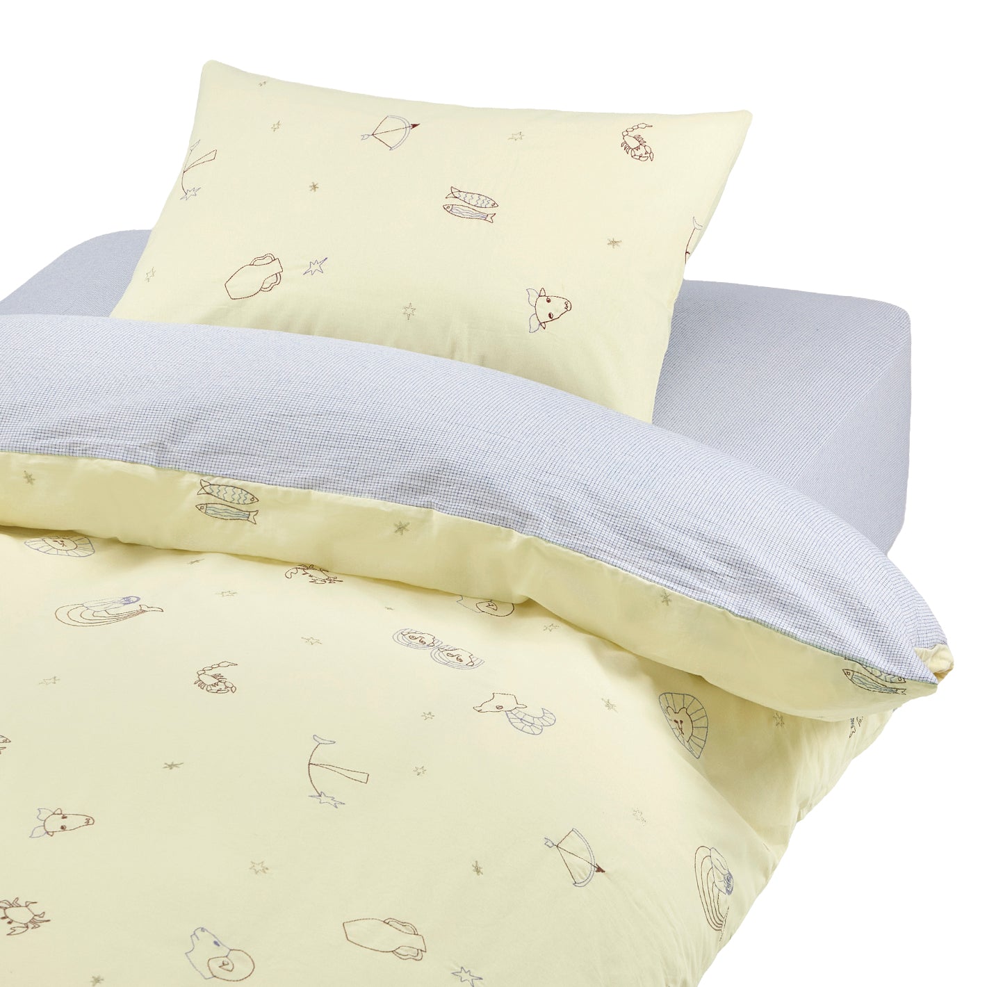 12星座のイラストを刺繍で表現した、遊び心のあるベッドリネン。