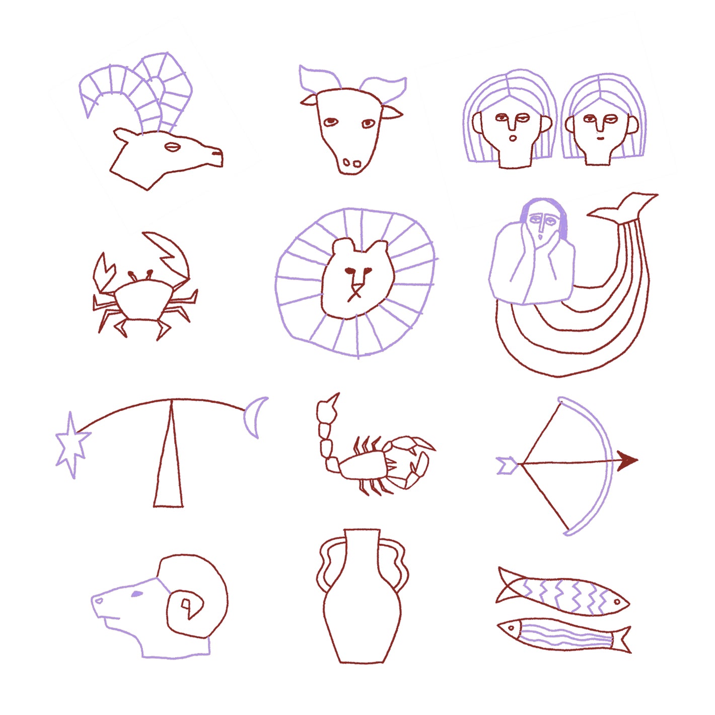 12星座のイラストを刺繍で表現した、遊び心のあるピローケース。