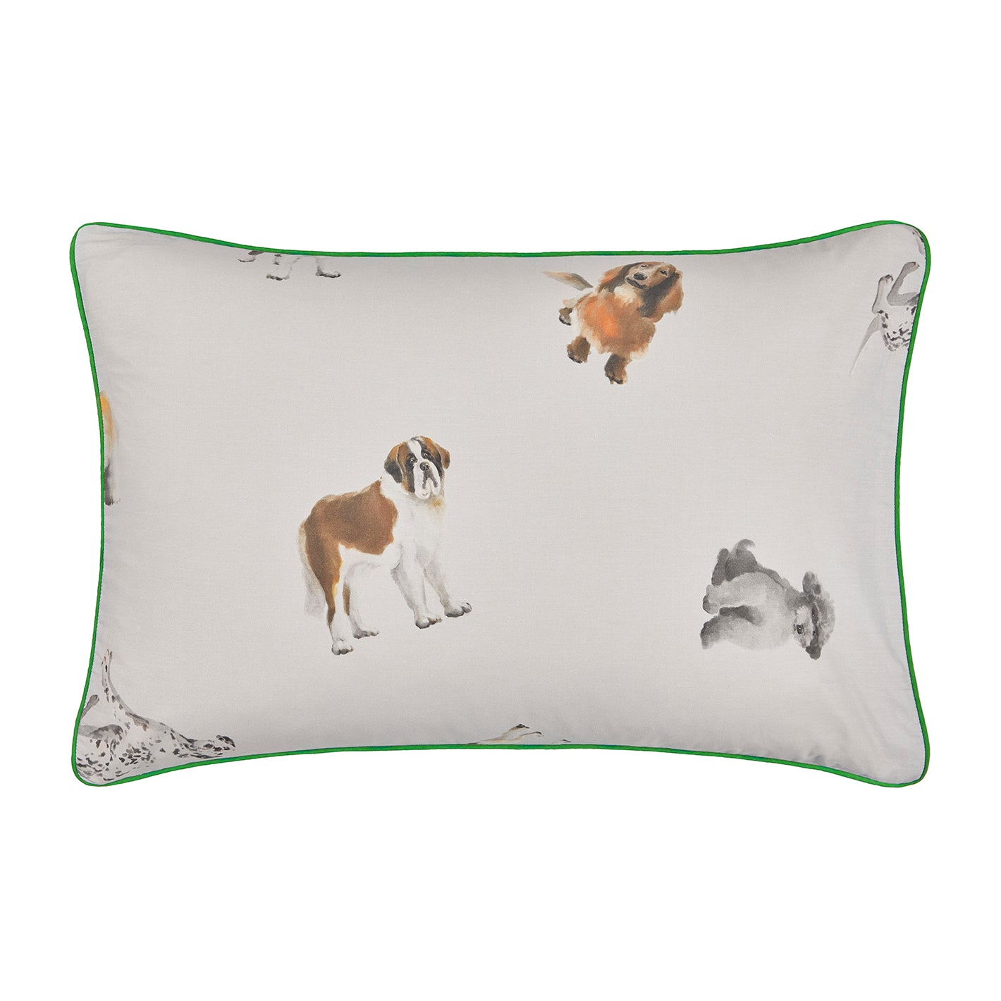 さまざまな犬種の犬たちが集まった、ユニークなデザインのピローケース。