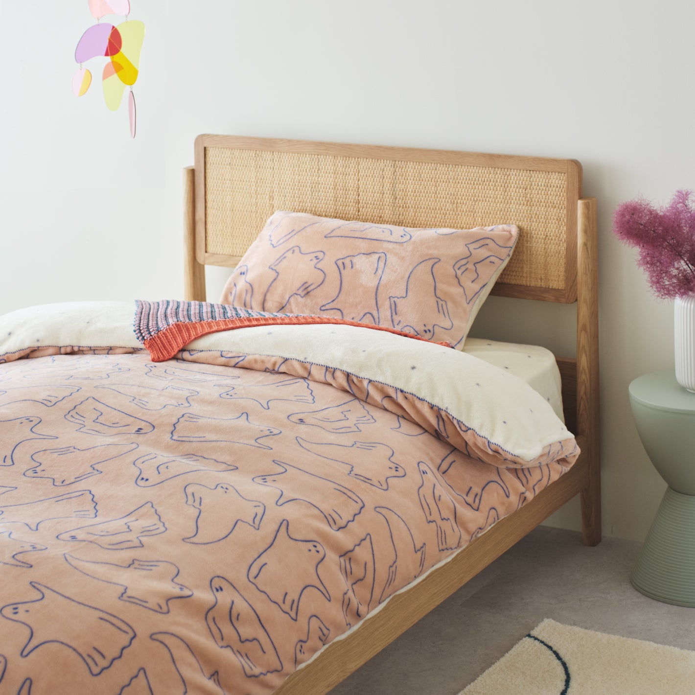 夜にこっそり集まったオバケたちをイメージした、遊び心たっぷりのピローケース。
