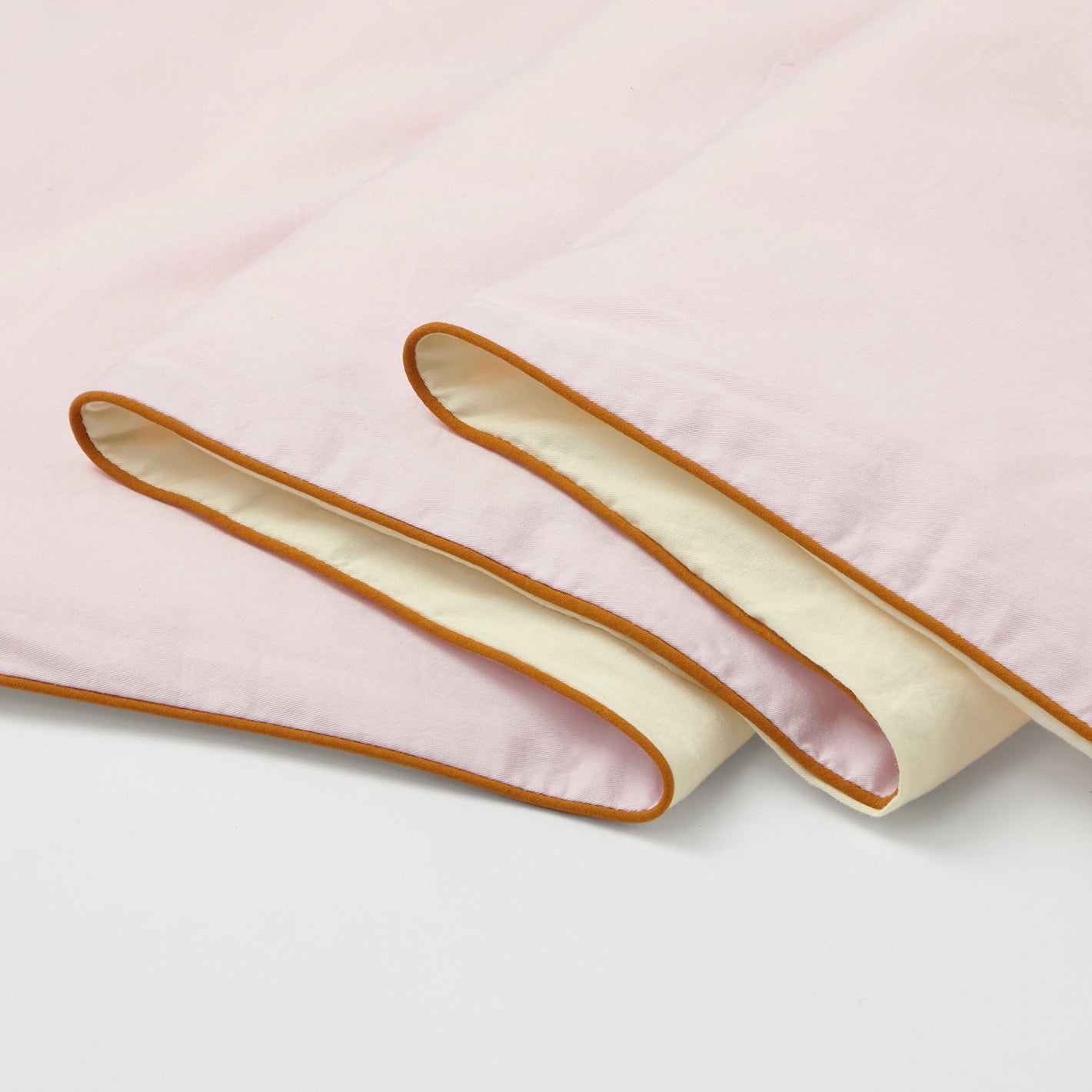 シンプルな無地のデザインに、パイピングのカラーを効かせた薄掛け布団。