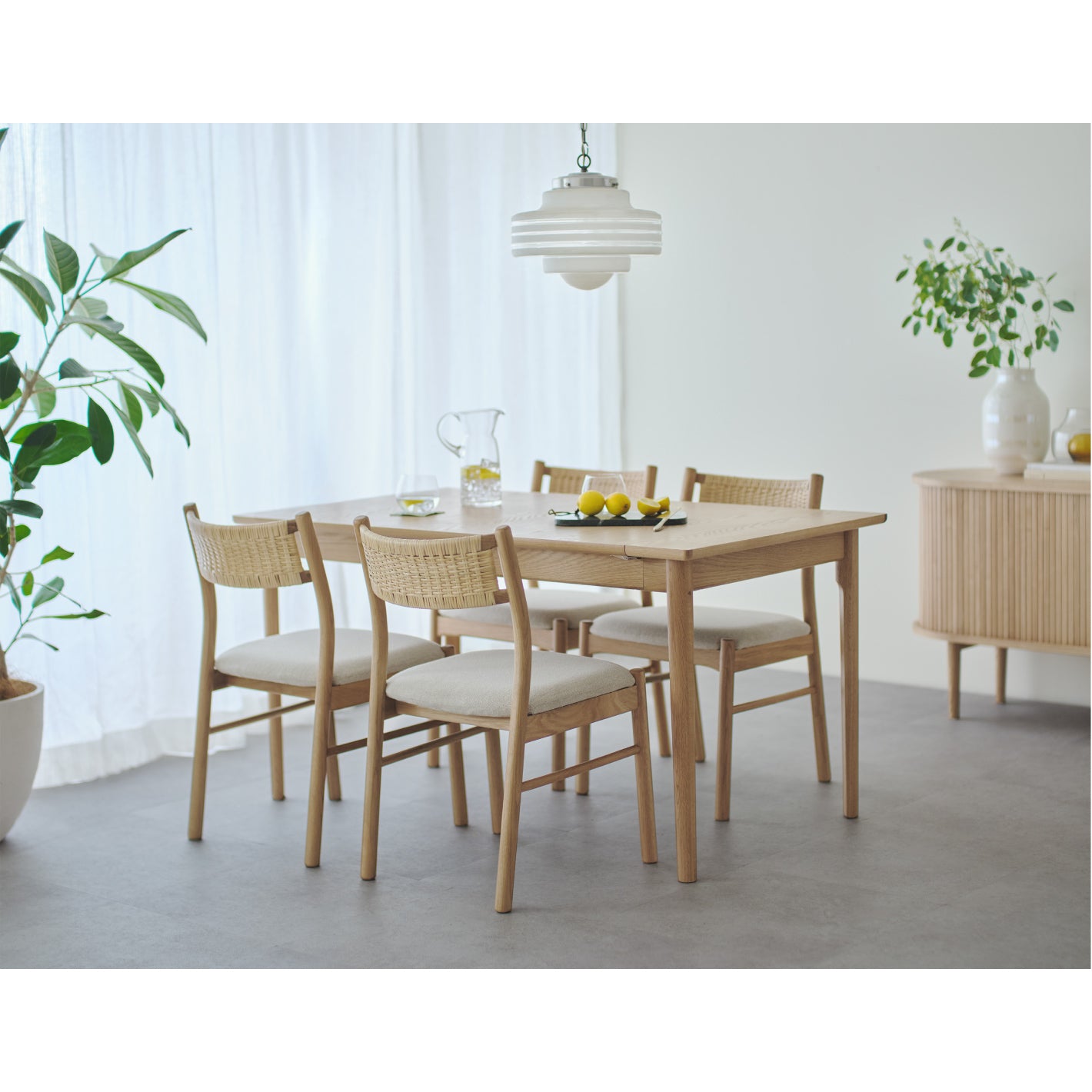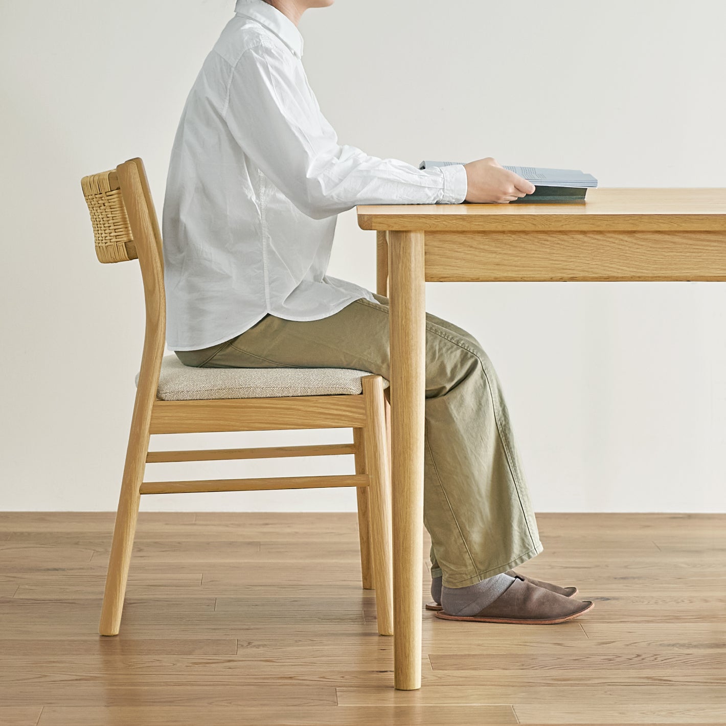 オーク材の表情豊かな木目やナチュラルな質感が、お部屋をやさしい印象に。