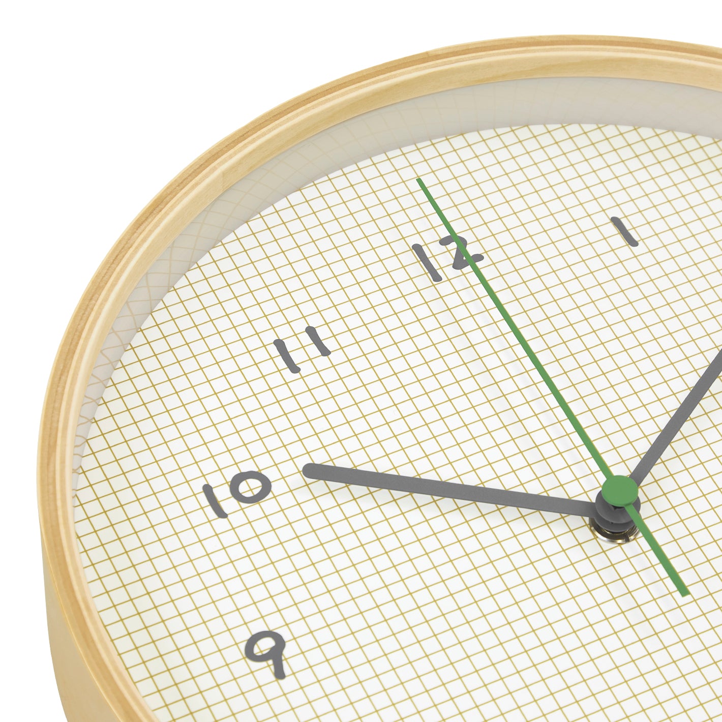 方眼紙に手書きで描いたような数字や、秒針の差し色がポイント。