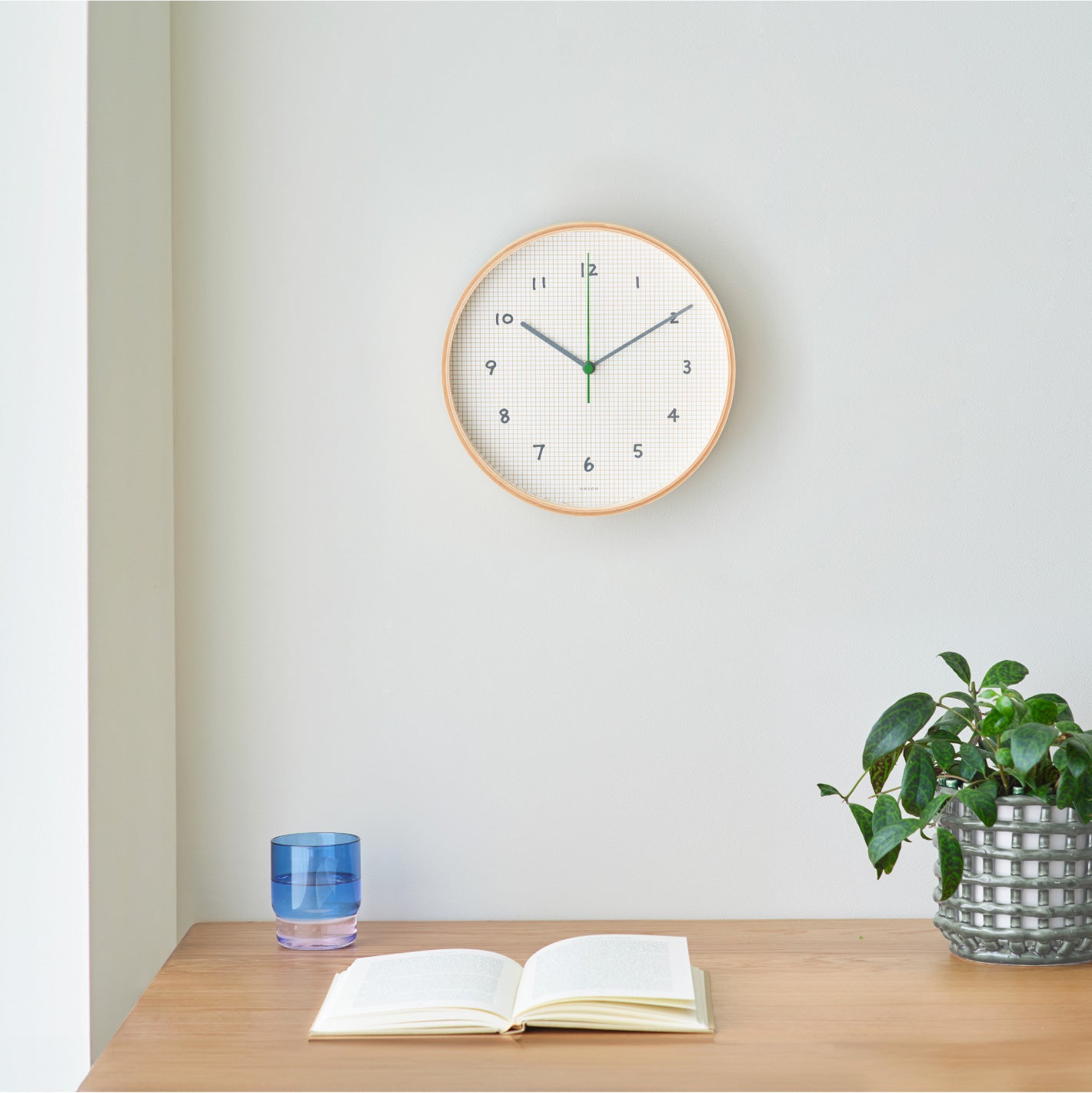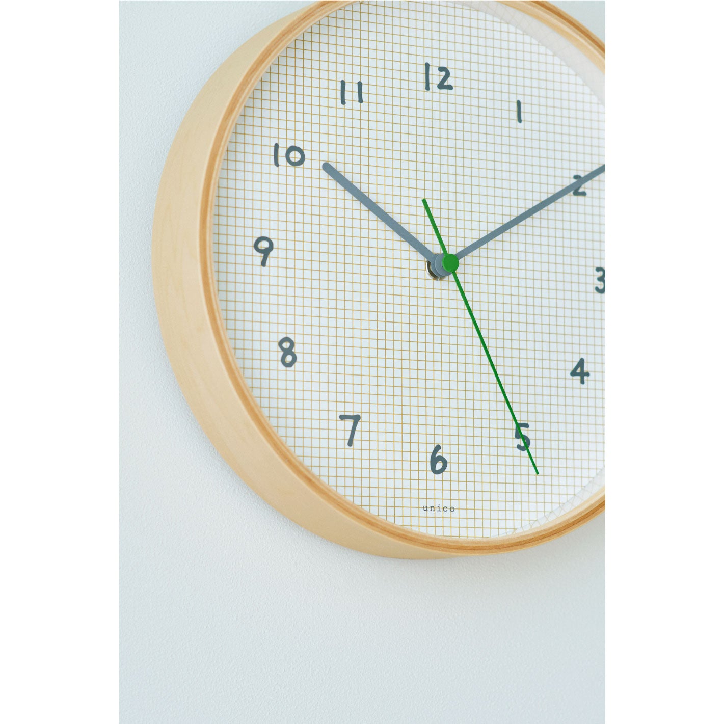 unicoオリジナルデザインの、壁掛けの電波時計。