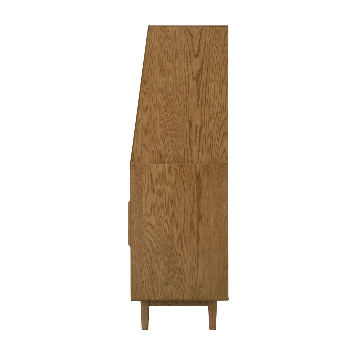側板に傾斜をつけた圧迫感の少ないデザインで、キッチンやリビングなど、置く場所を選ばずにお使いいただけます。