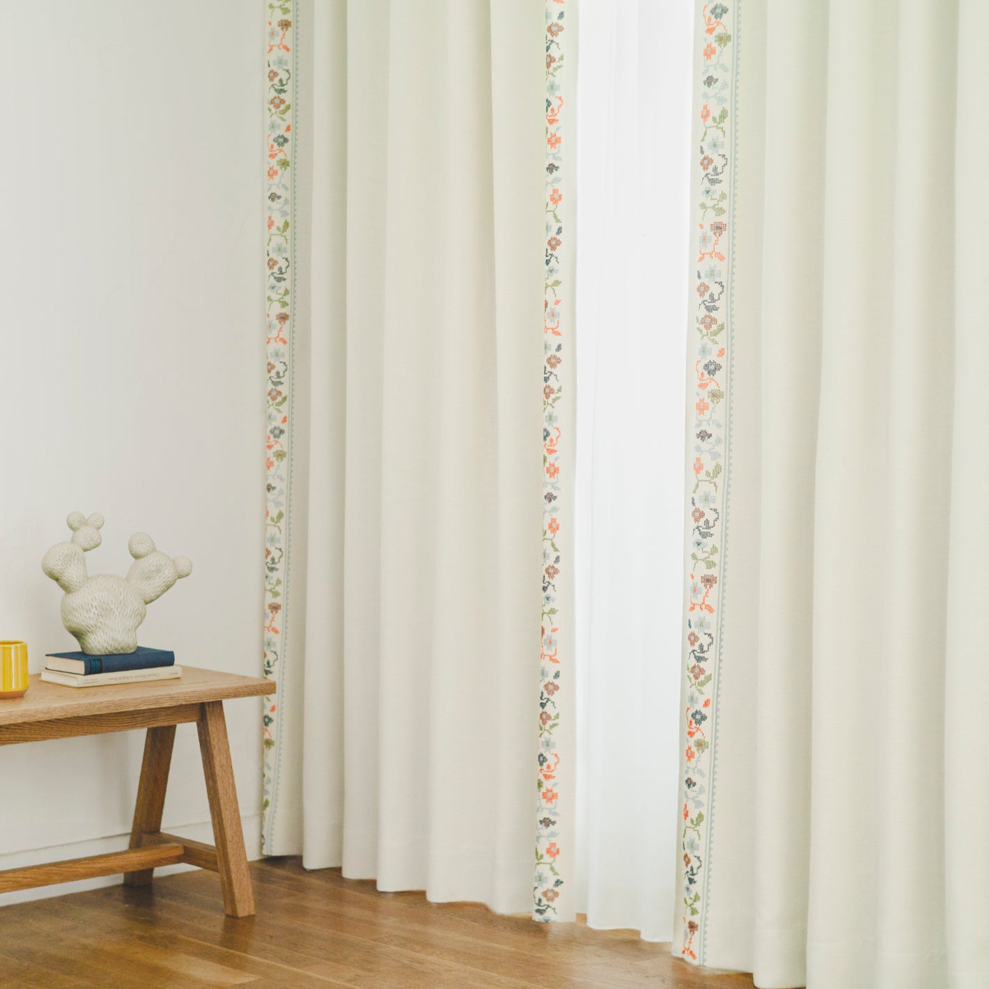 メキシコの手刺繍をイメージした花柄を、両端にあしらった遮光カーテン。