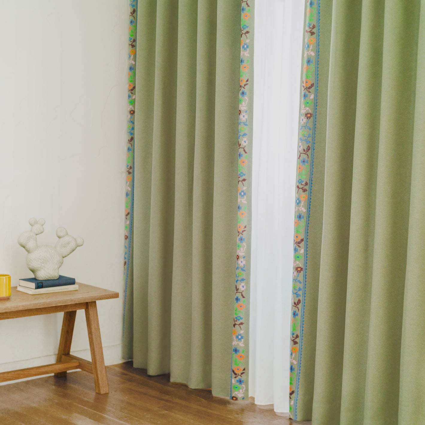 メキシコの手刺繍をイメージした花柄を、両端にあしらった遮光カーテン。
