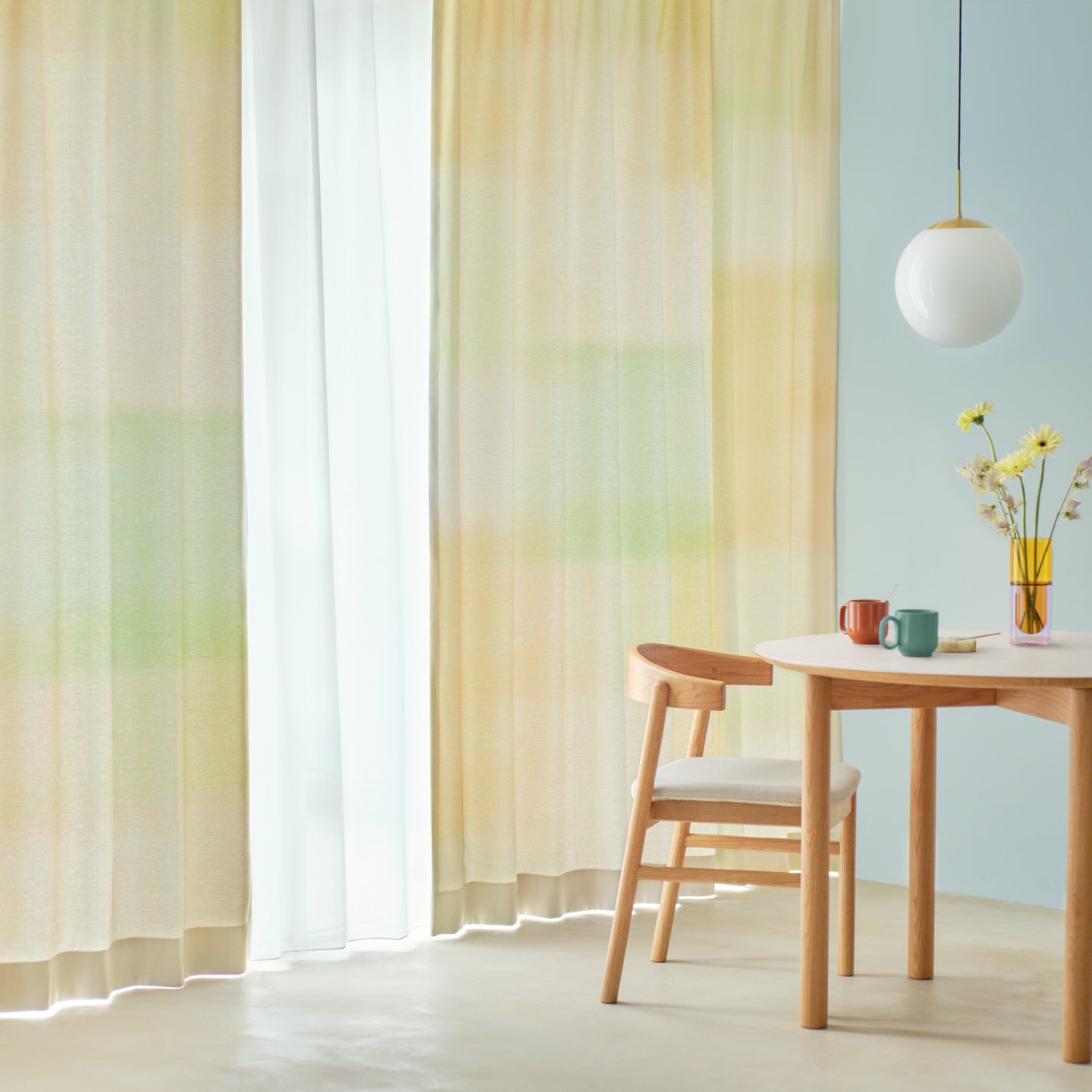 大胆なグラデーション柄を、プリントで繊細に表現した遮光カーテン。
