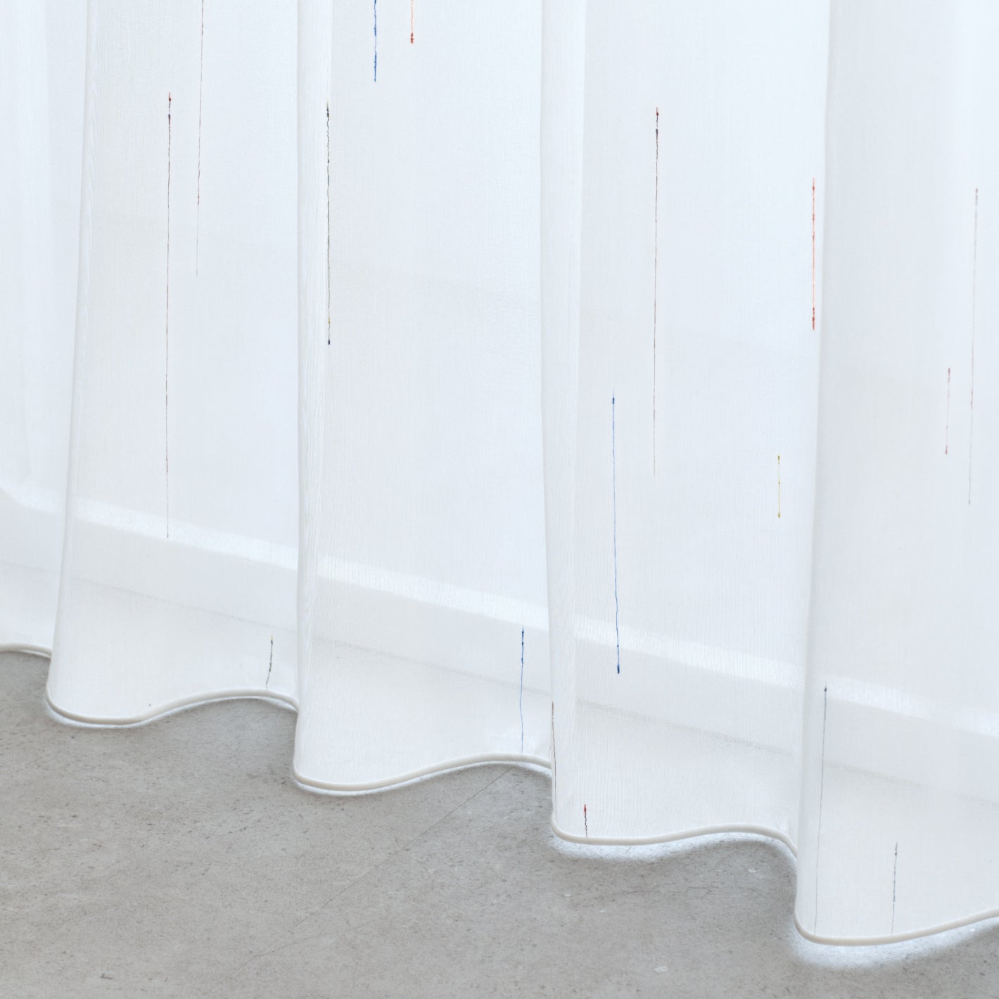 カラフルなネップがアクセントになったレースカーテン。