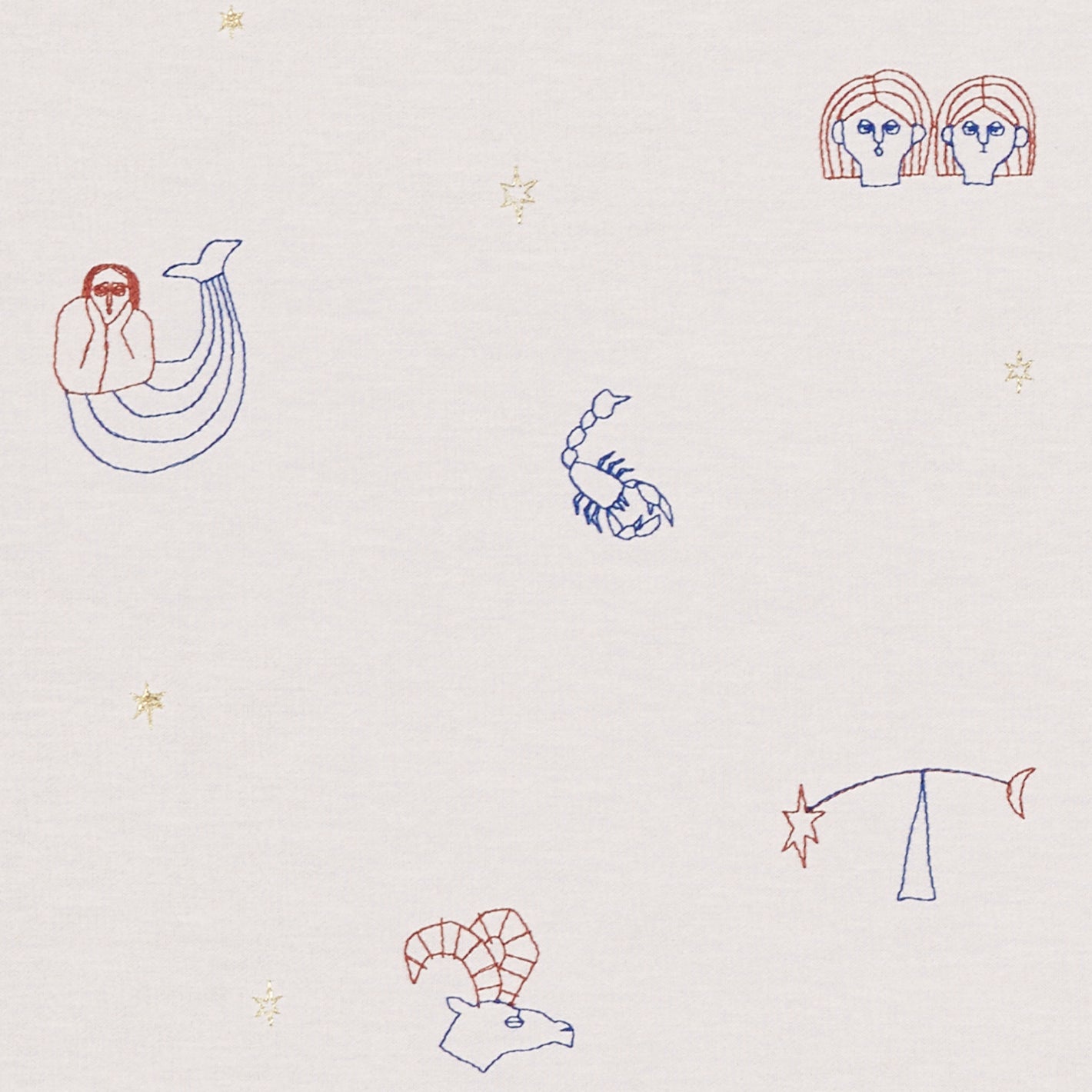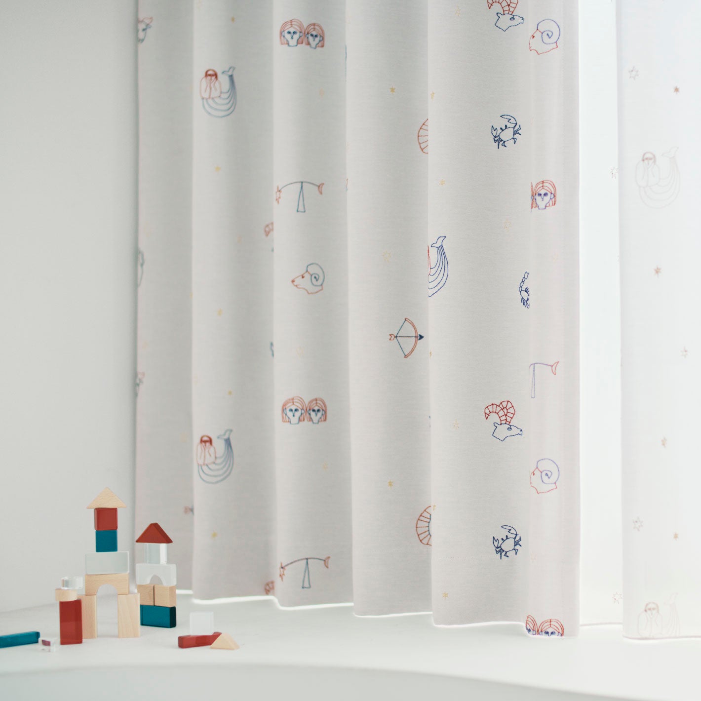12星座や星のイラストを刺繍で表現した、遊び心のある遮光カーテン。