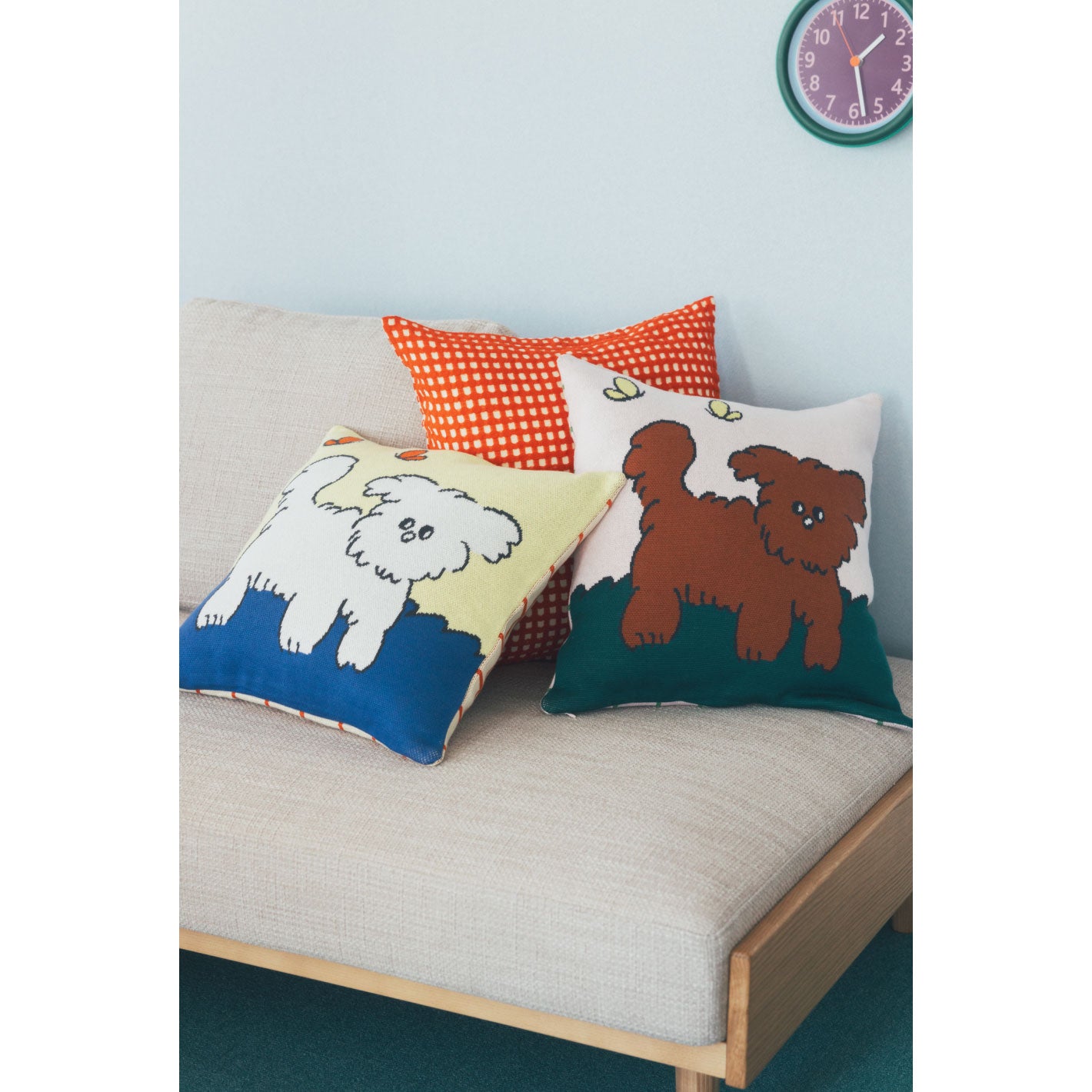 蝶と遊ぶ子犬やお花畑に隠れている猫に、ほっこりと癒やされるクッションカバー。