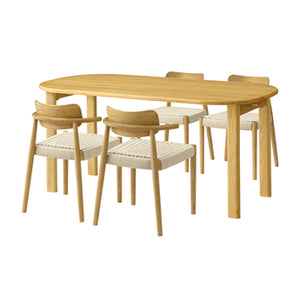 ラウンドダイニング5点セット 木脚ストレート ナチュラル Φ1100