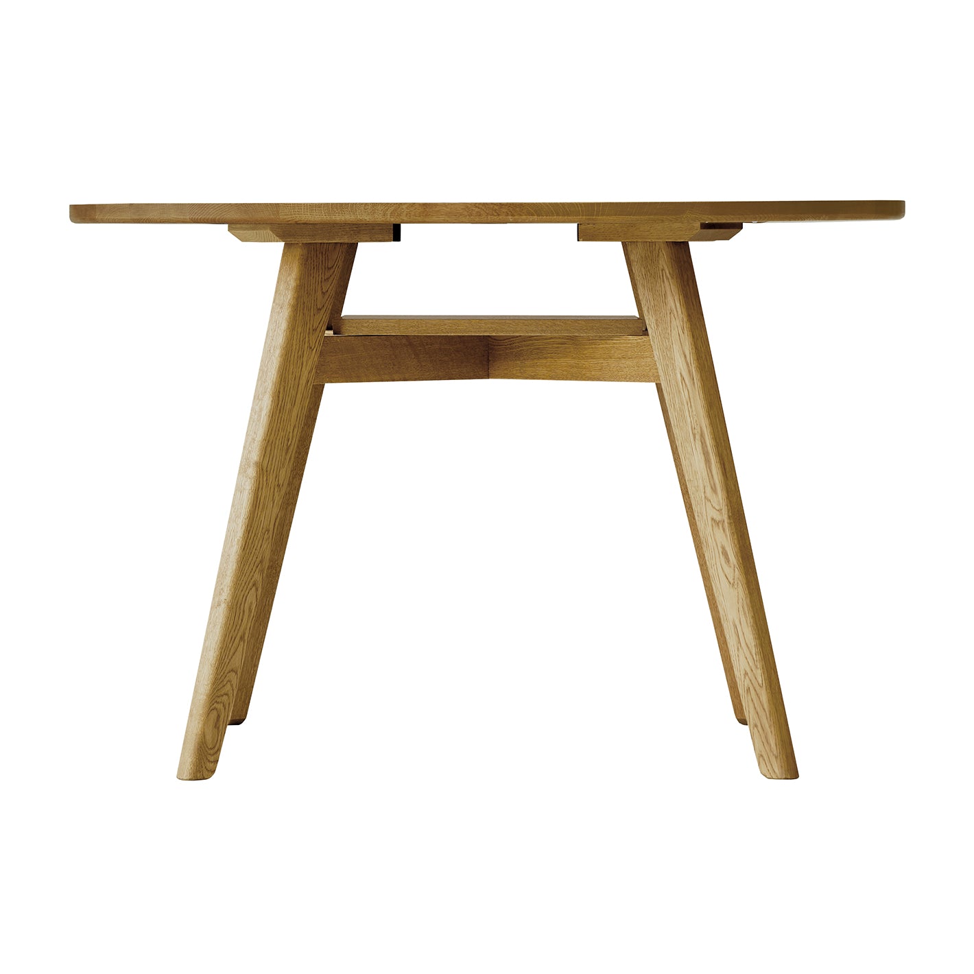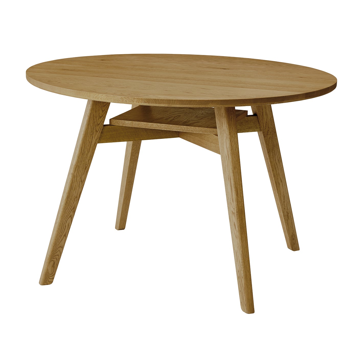 木目や節など、木の表情を生かしたカジュアルな印象のラウンドダイニングテーブル。