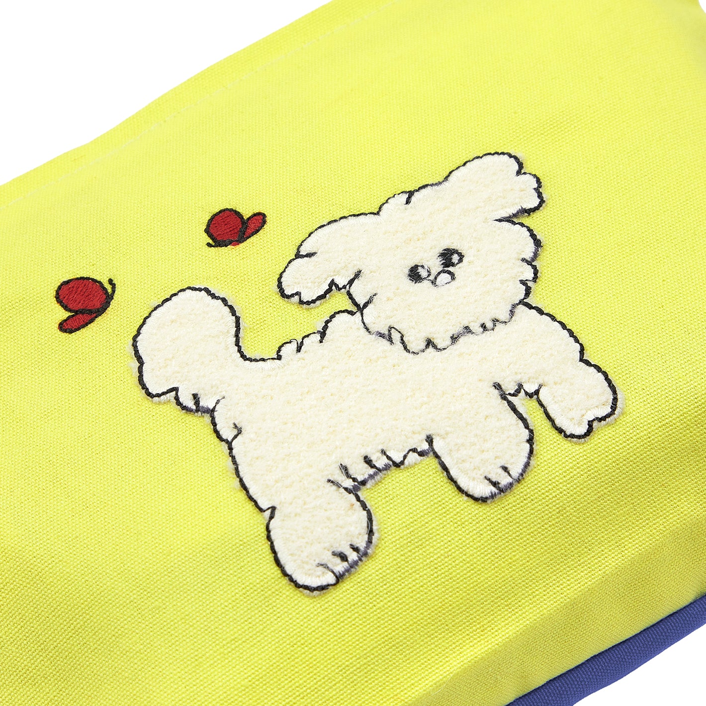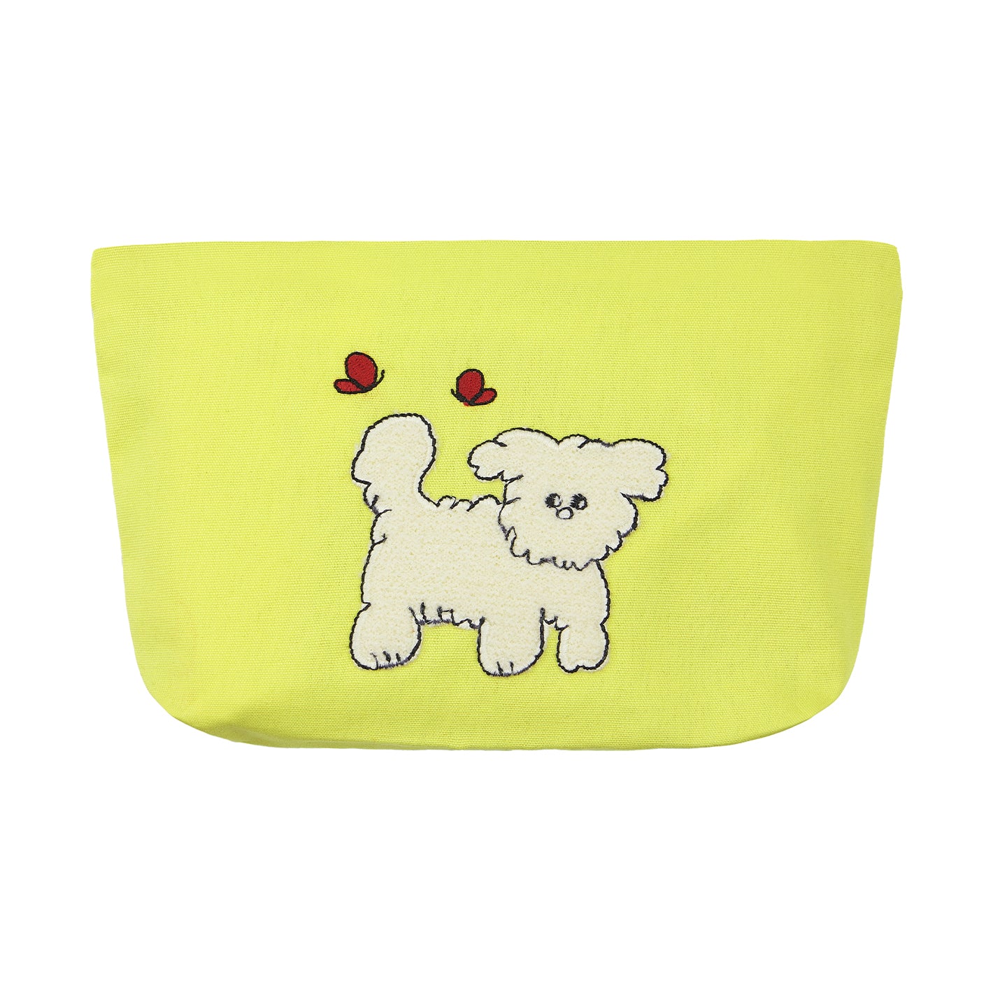 蝶と遊ぶ子犬や、お花畑に隠れている猫のアップリケがかわいらしいポーチ。