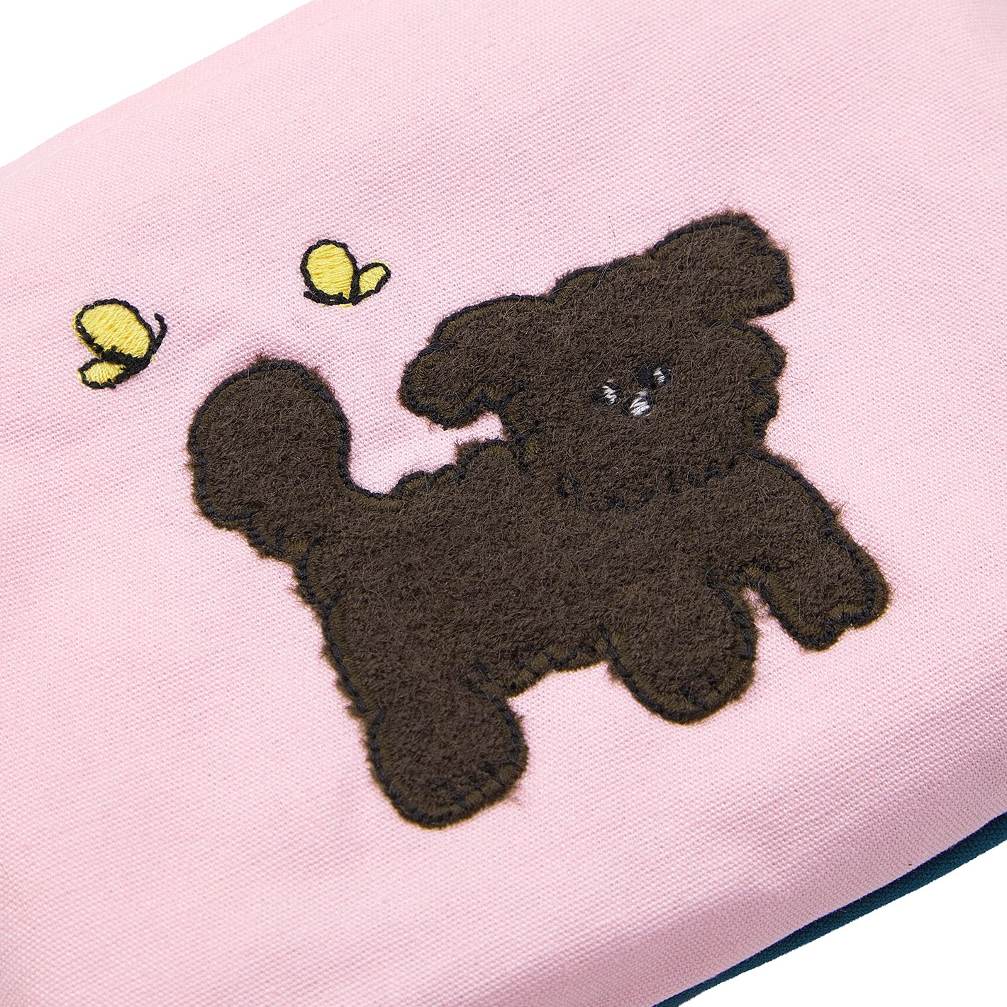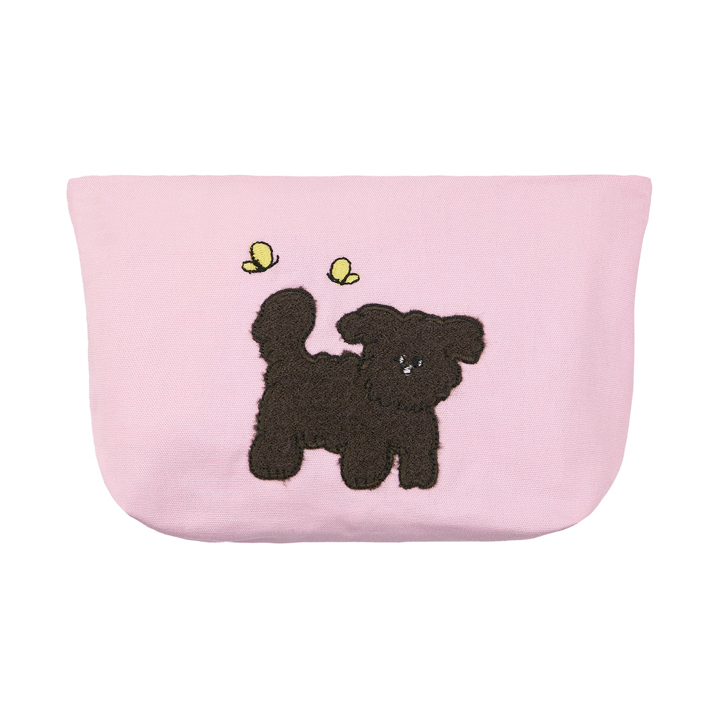 蝶と遊ぶ子犬や、お花畑に隠れている猫のアップリケがかわいらしいポーチ。