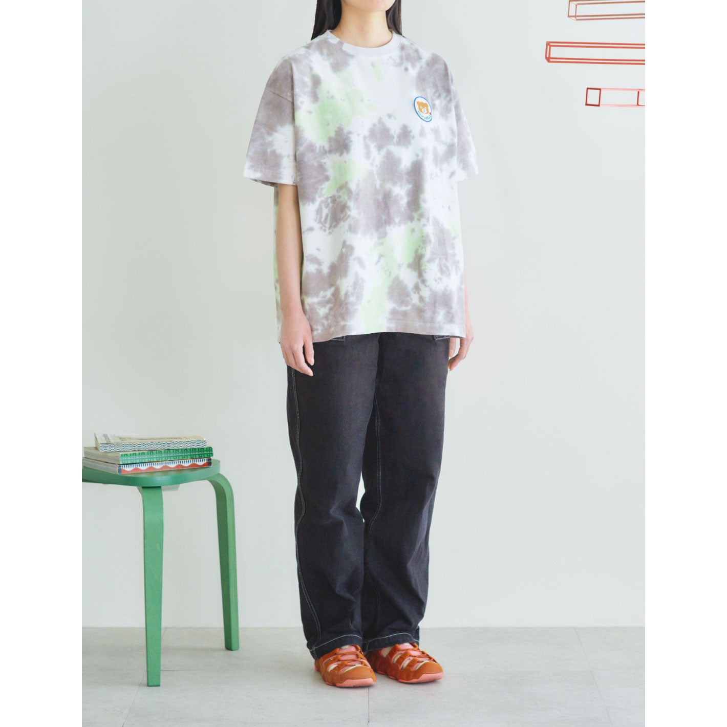 タイダイ染めの生地に、ワッペンをあしらったオーバーサイズTシャツ。