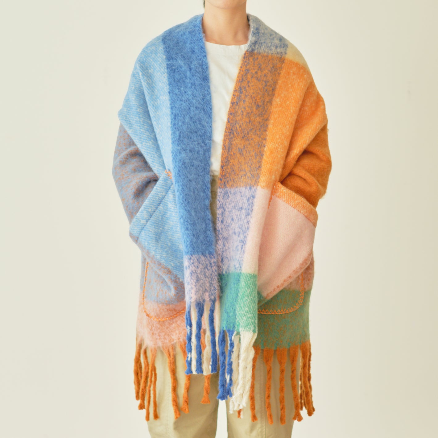 モヘアタッチのふわふわとした肌ざわりで、厚手ながら軽やかな素材感を楽しめます。