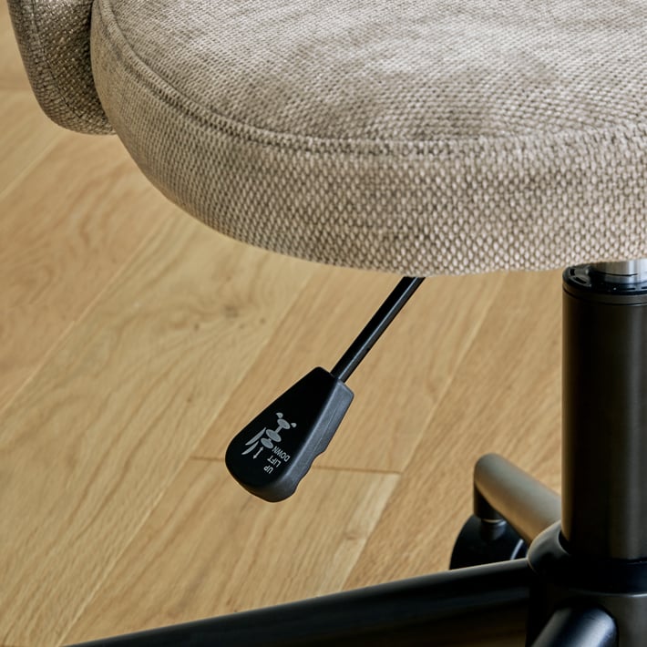 デスクやテーブルの高さに合わせて、レバー操作で座面の高さを変えられる昇降式です。