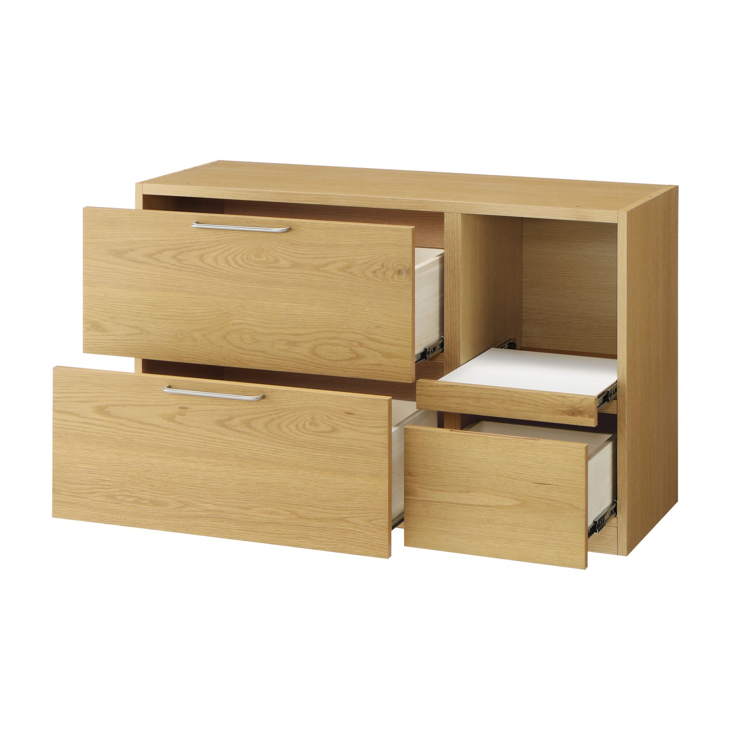 直線的でシャープなフォルムと、オーク材のナチュラルな風合いが魅力です。