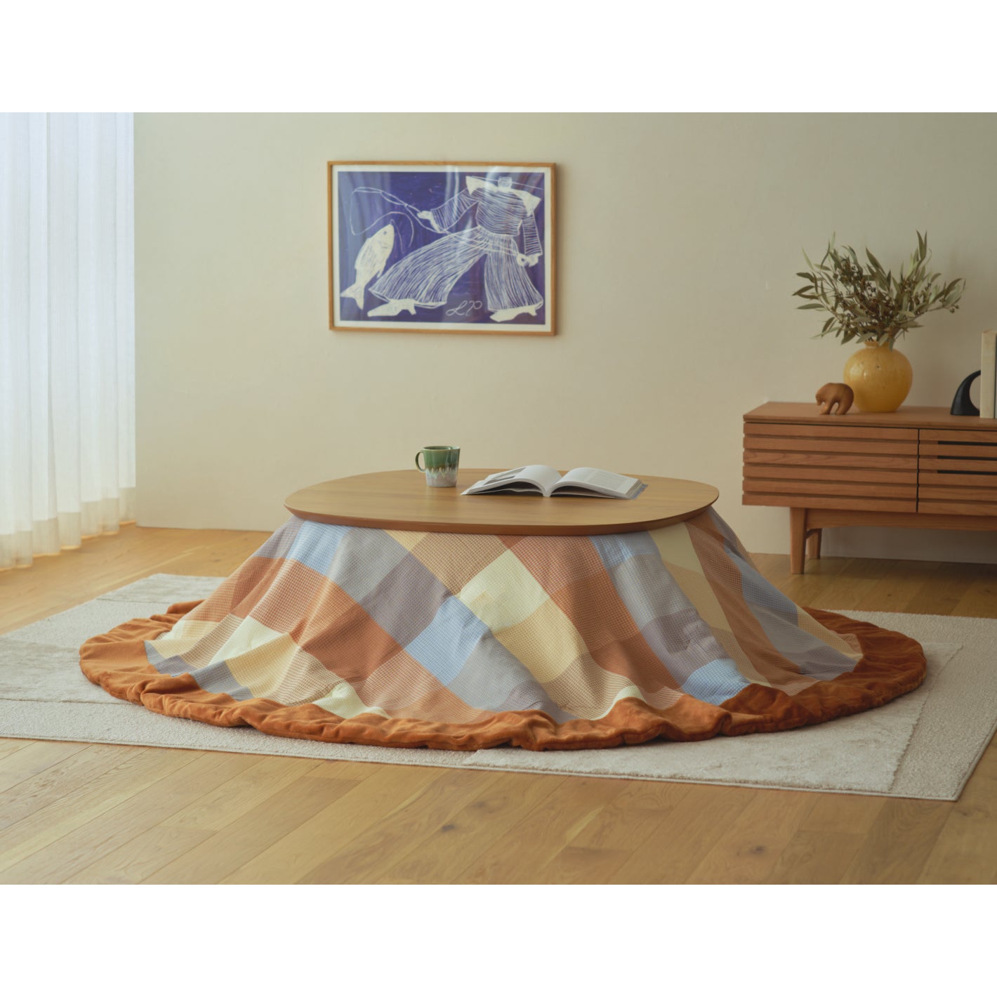 ワッフル素材が心地いい、シンプルなブロックチェック柄のこたつ掛け布団。