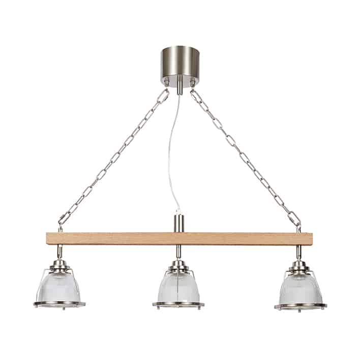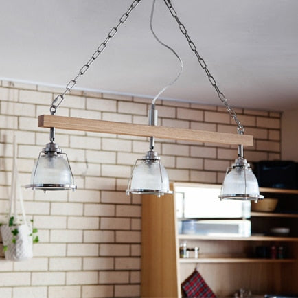 ウッドにガラスシェードを3つ取り付けたスポット型の照明です。