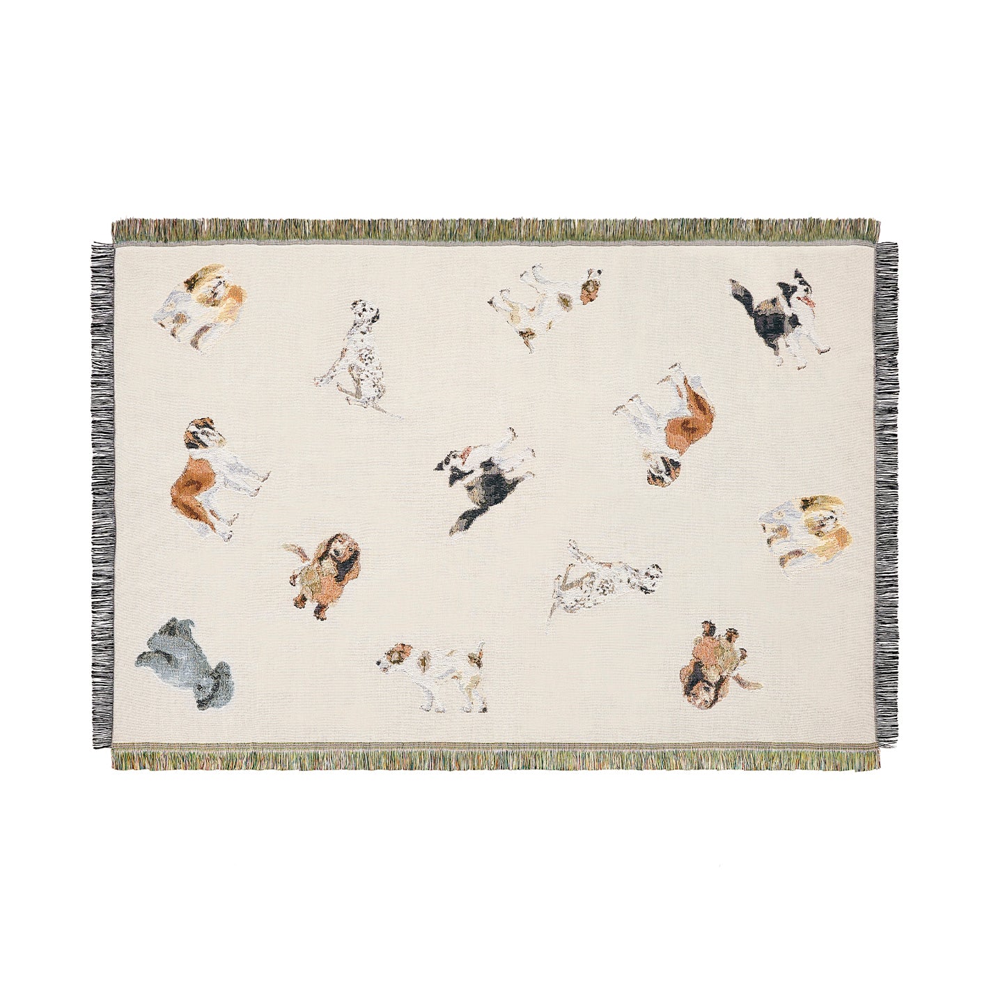 さまざまな犬種の犬たちを、ゴブラン織りで表現したブランケット。