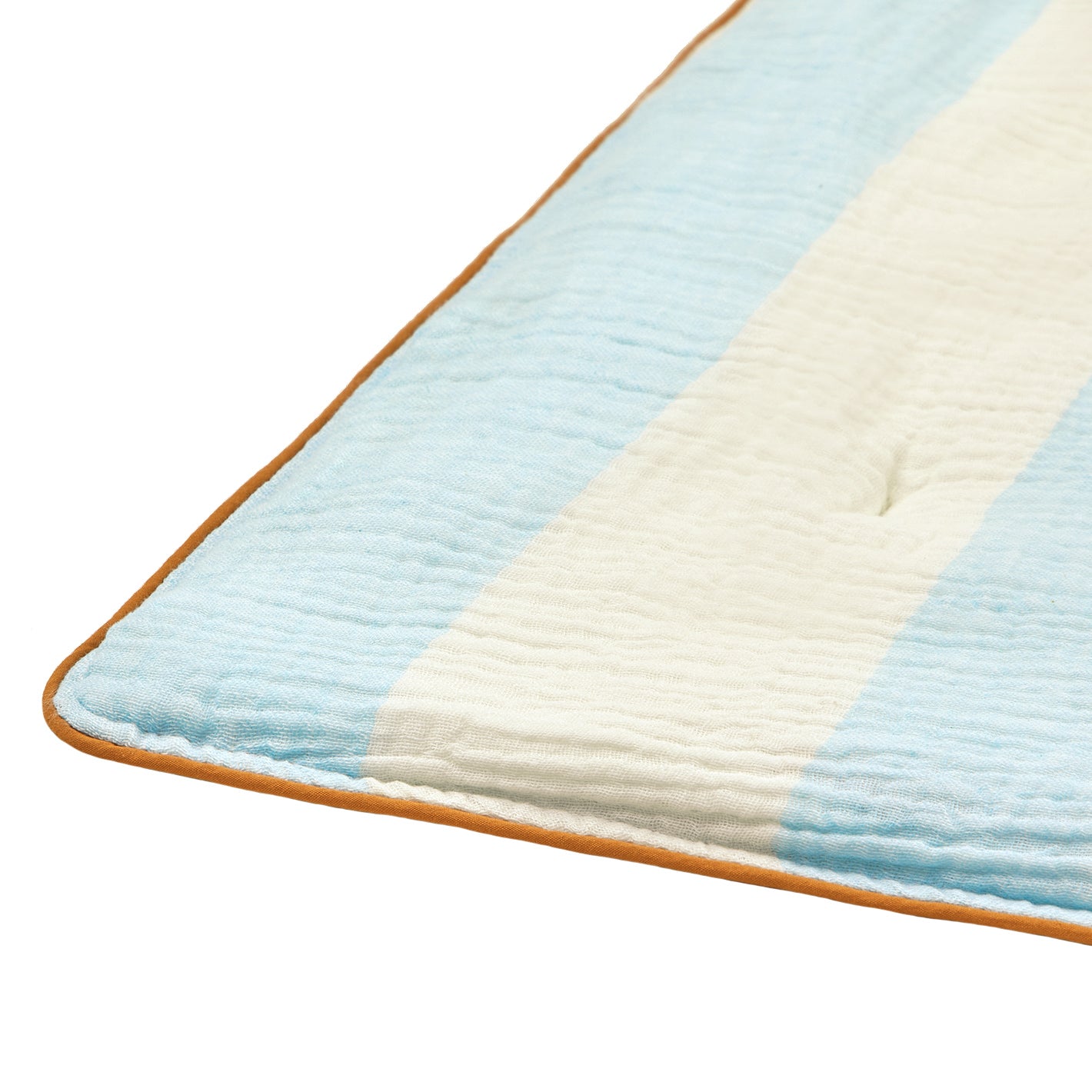 太めのストライプ柄や、パイピングのカラーがポイントになった薄掛け布団。