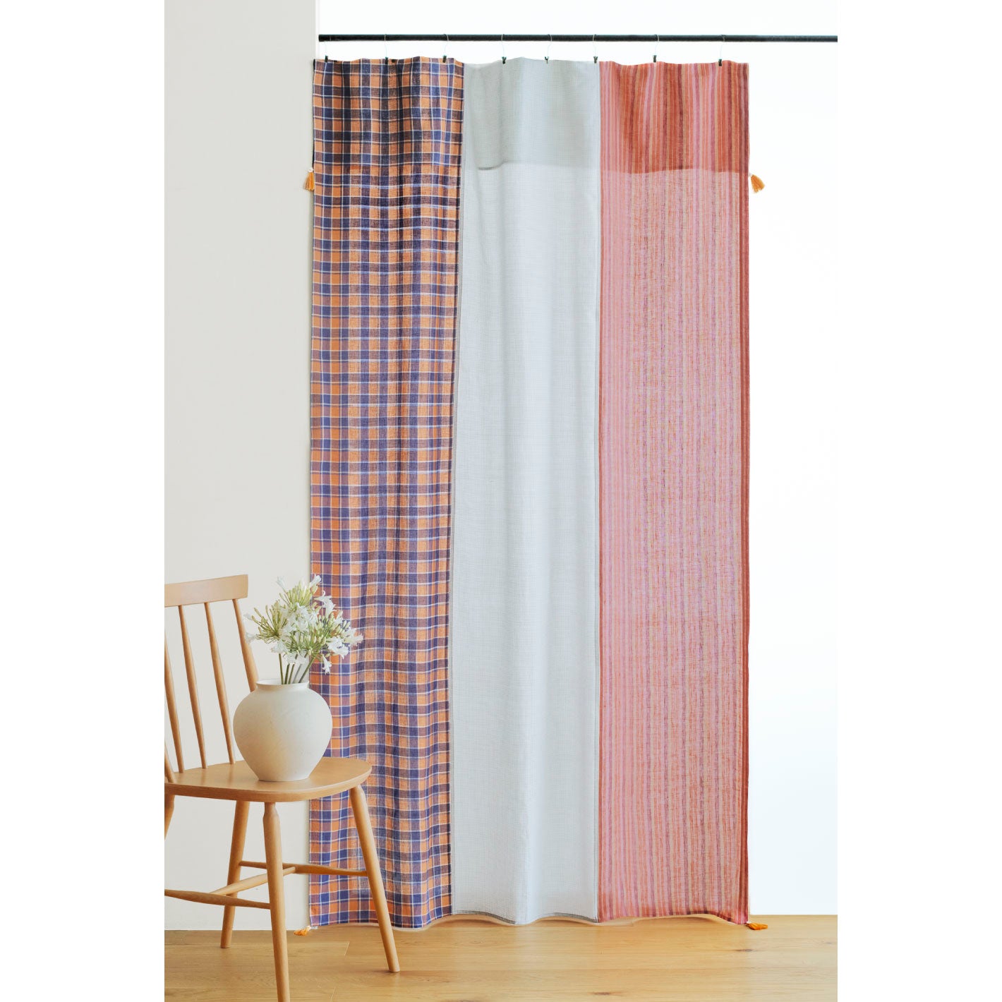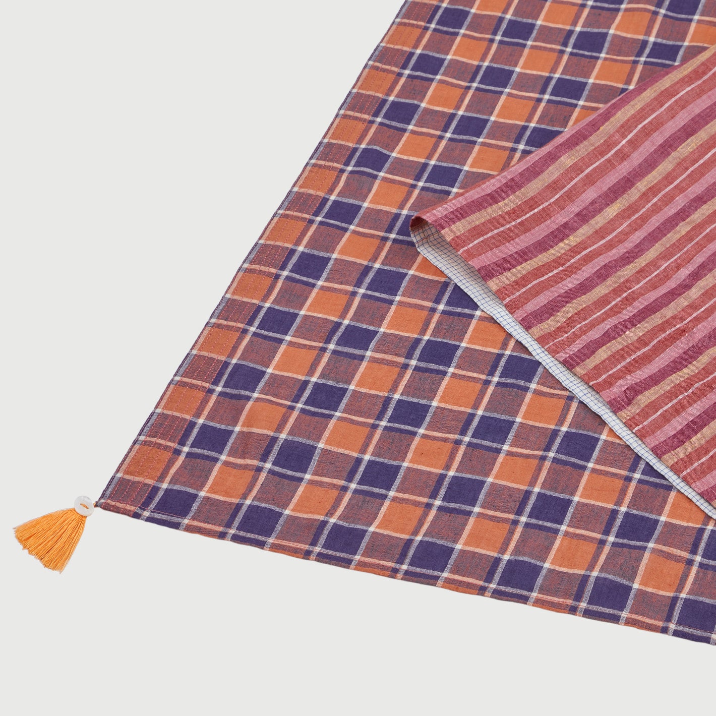 インドの職人が手織りでていねいに仕上げた、チェックやストライプ柄の生地を組み合わせたマルチクロス。