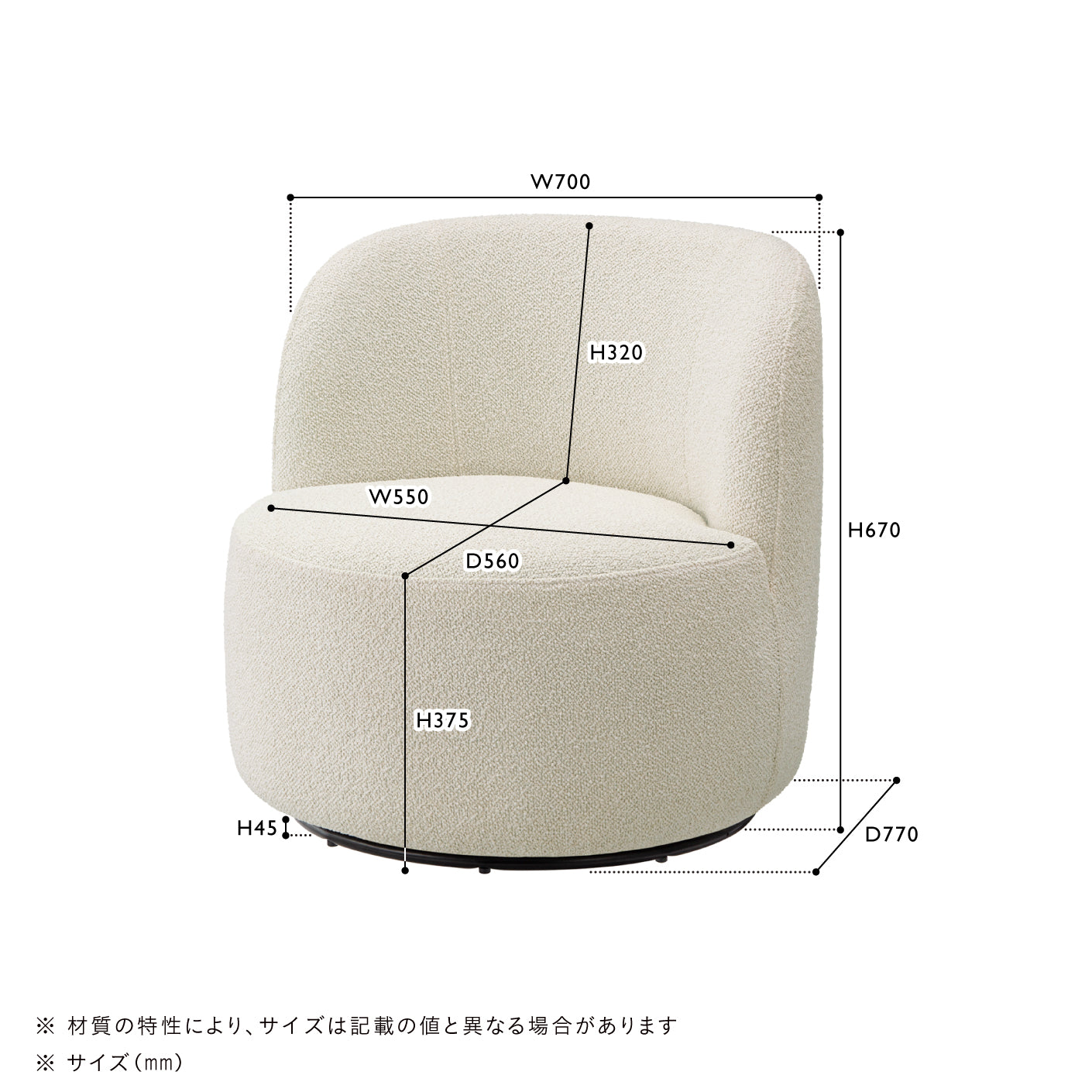 包み込まれるような座り心地のラウンジチェア。360度回転します。