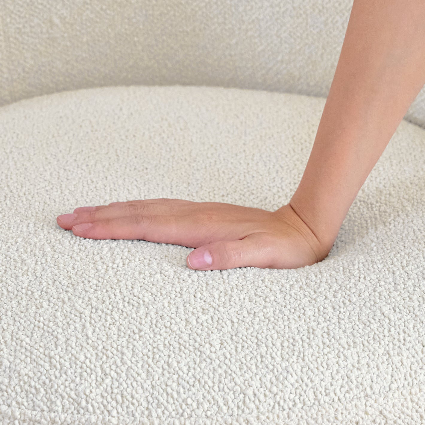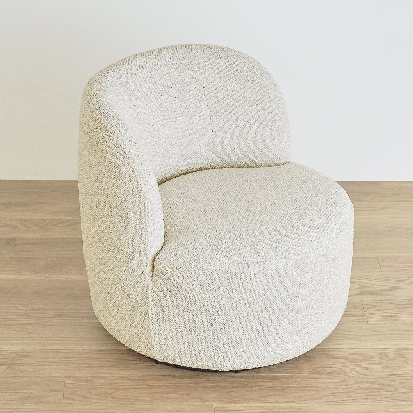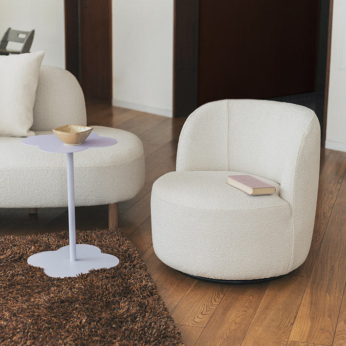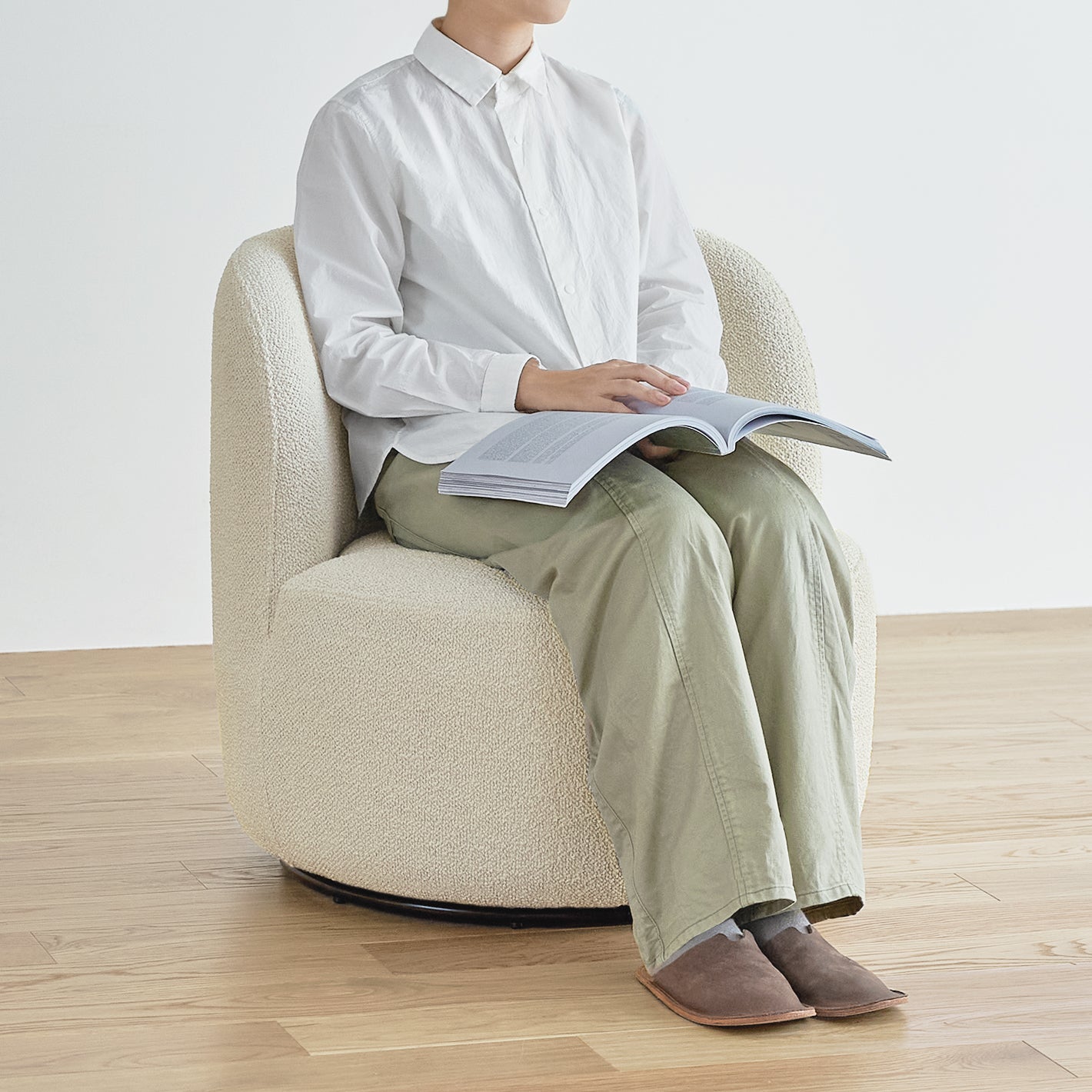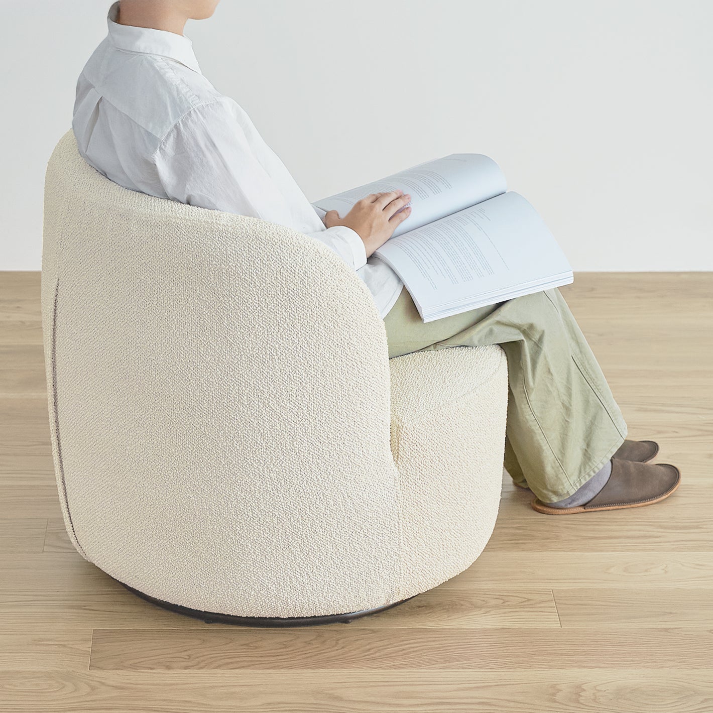 ぷっくり丸みを帯びたデザインの、回転式ラウンジチェア。