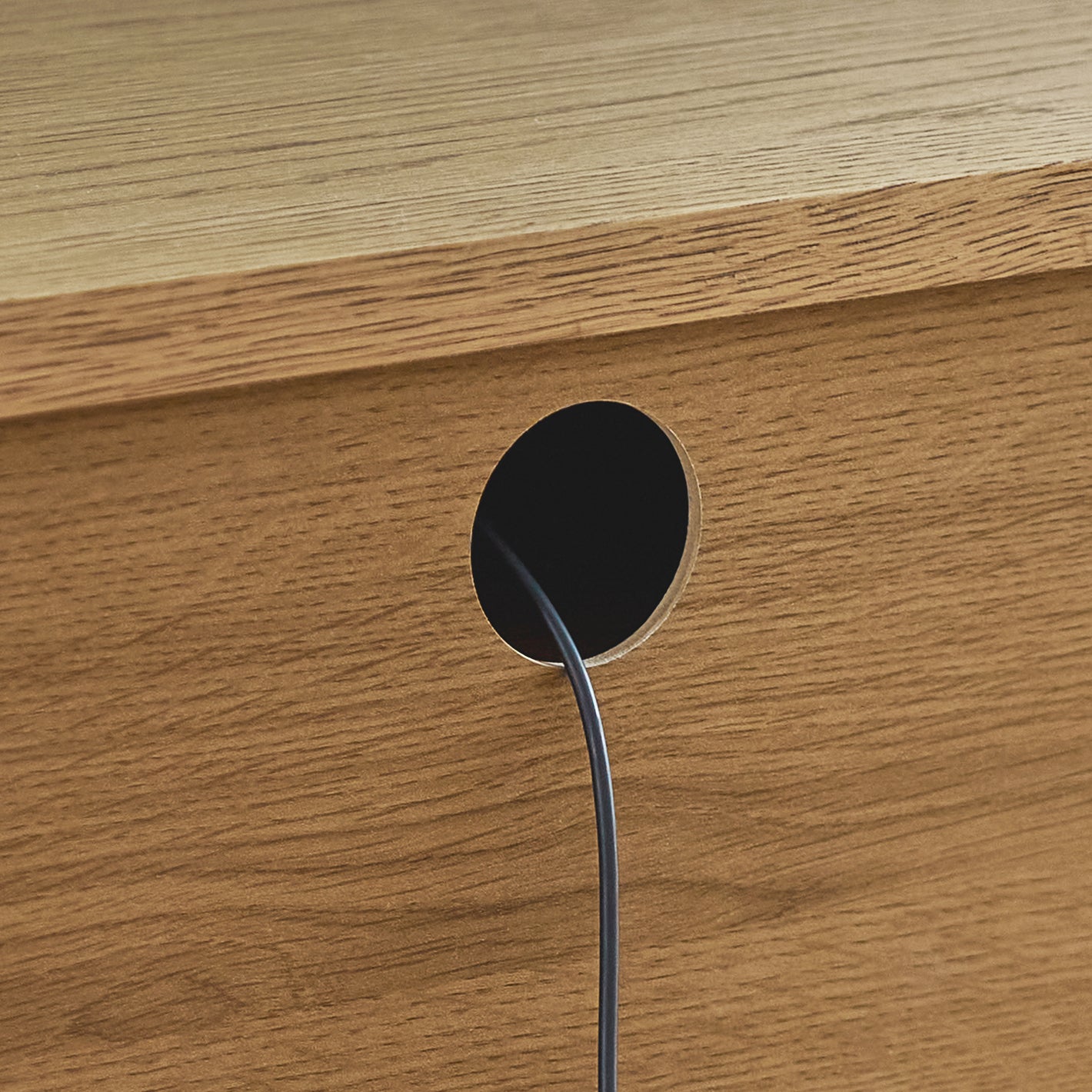 AV機器などのコードを通すことができるコンセントホール。