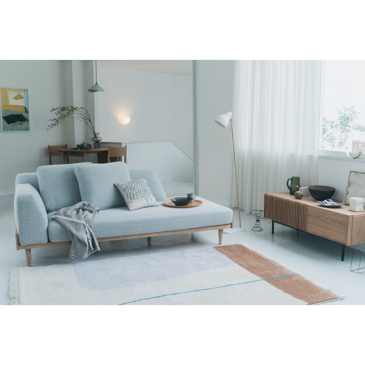 中央脚がないデザイン。脚の存在感を最小限に抑えているため、お部屋をすっきりと見せてくれます。