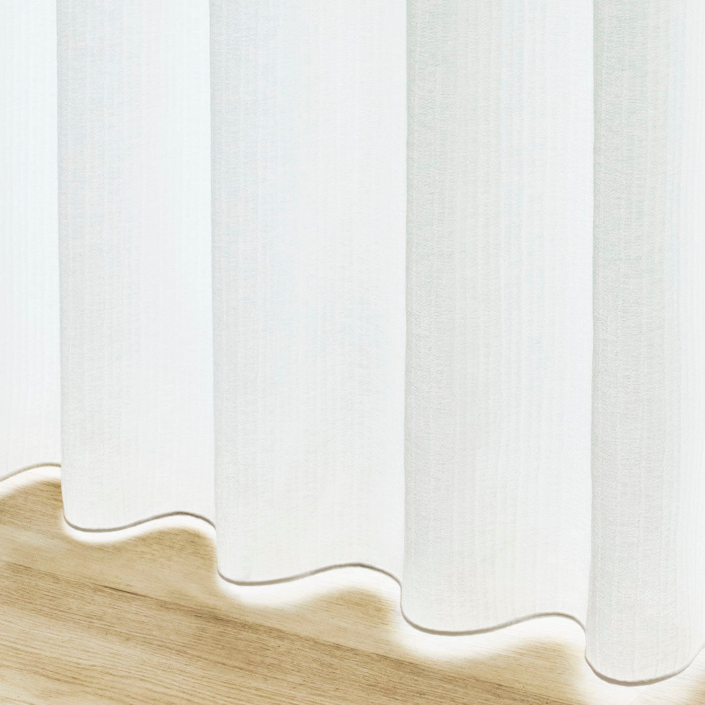 リブセーターのような畝(うね)の入った、RIBLYとおそろいのレースカーテン。