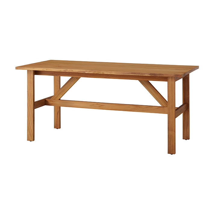 山小屋の梁をイメージしたデザインで、チーク材の素材感を楽しめる、一枚板のような仕上がりに。