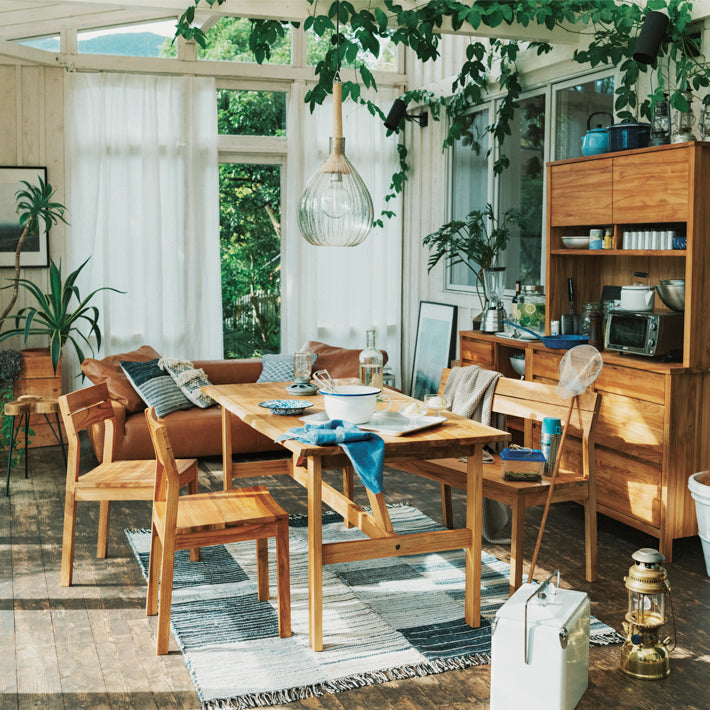 チーク材の存在感や自然の風合いをお楽しみいただけます。