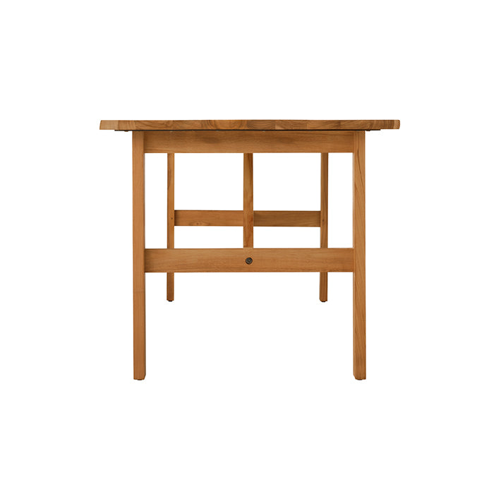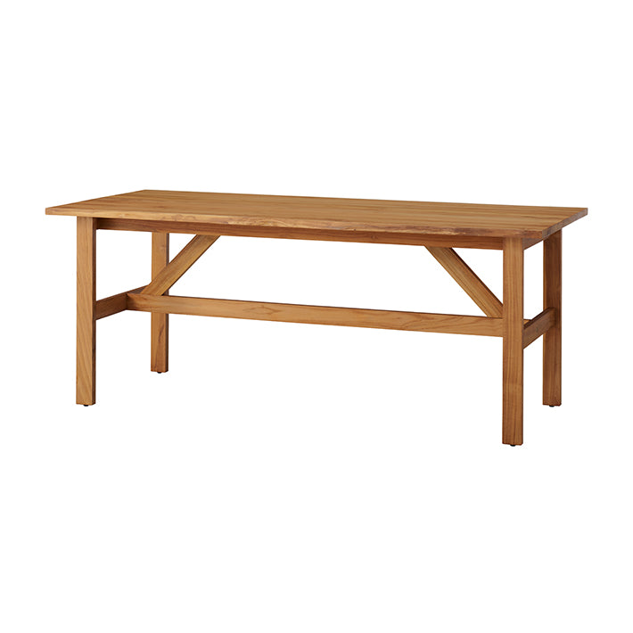 山小屋の梁をイメージしたデザインで、チーク材の素材感を楽しめる、一枚板のような仕上がりに。