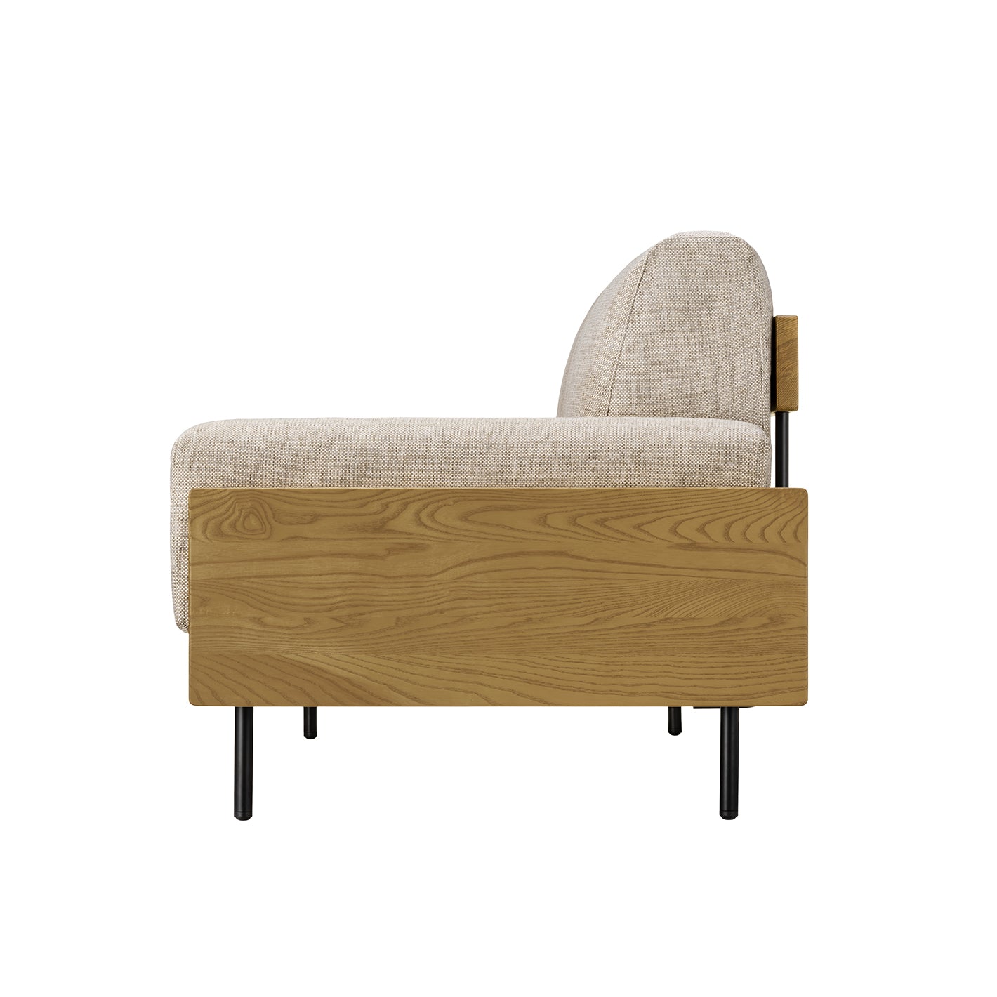 幅の広いアームを枕代わりに、横になってゆったりとくつろげます。脚と背面にはアイアン素材を使用し、軽やかな印象に。